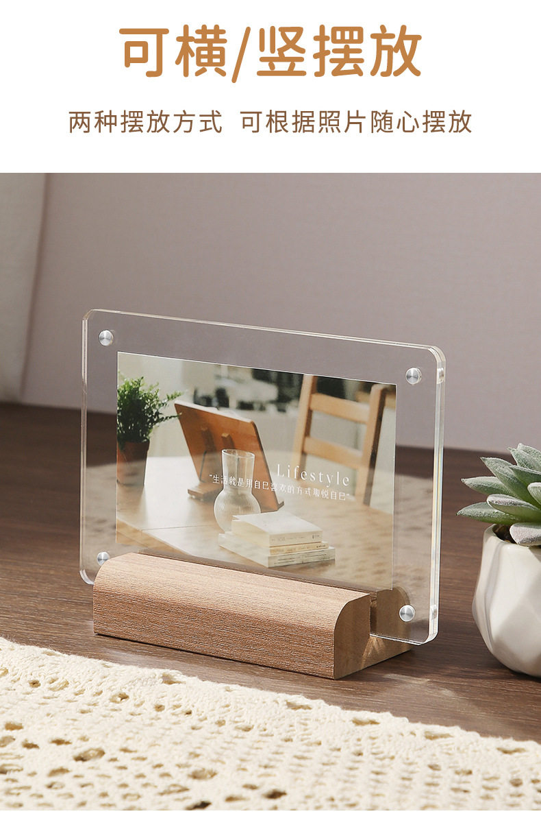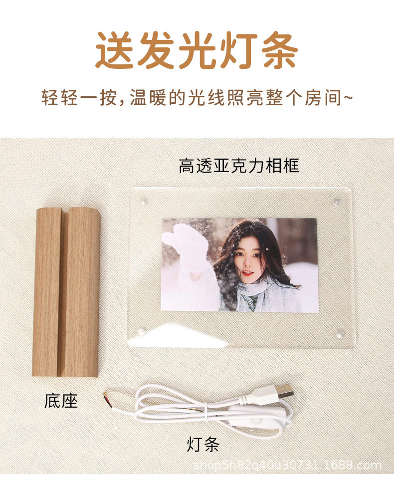 Transparent acrylic photo frame ins photo frame 6 8 inch specimen leaf carving display frame empty frame magnetic belt lamp table