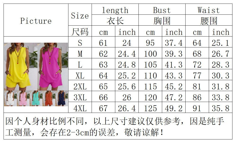 Spot European and American Cross-Border 24 Summer Aliexpress Pure Color Sleeveless V Neck Casual Top Loose Shorts Suit