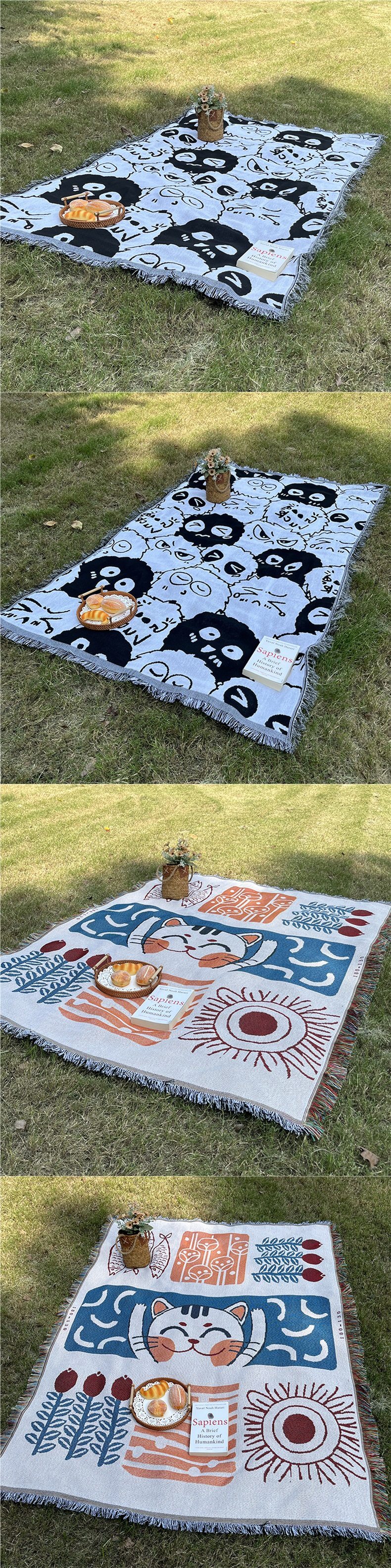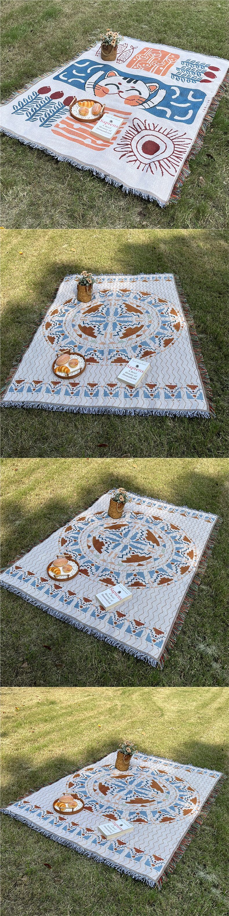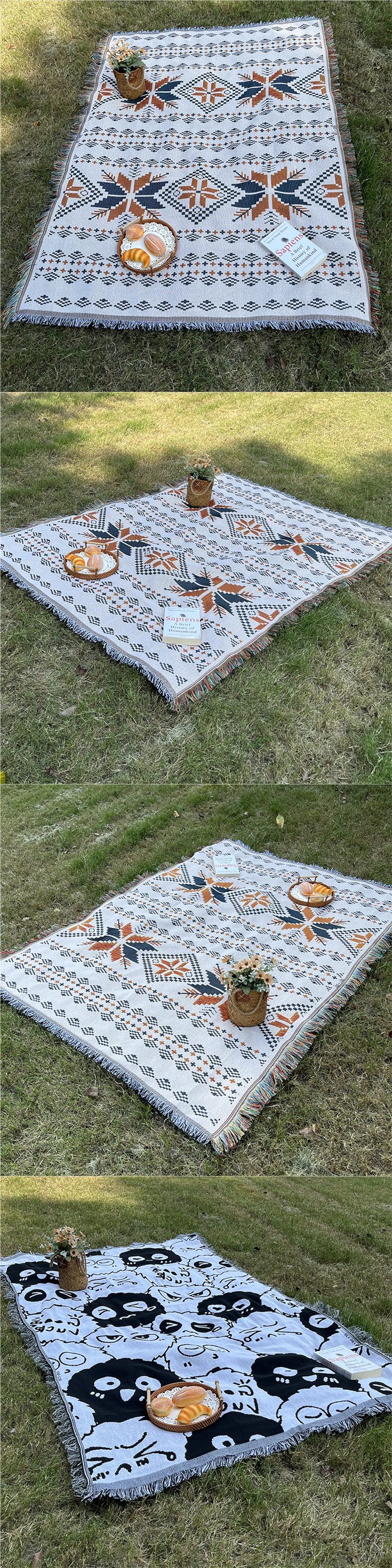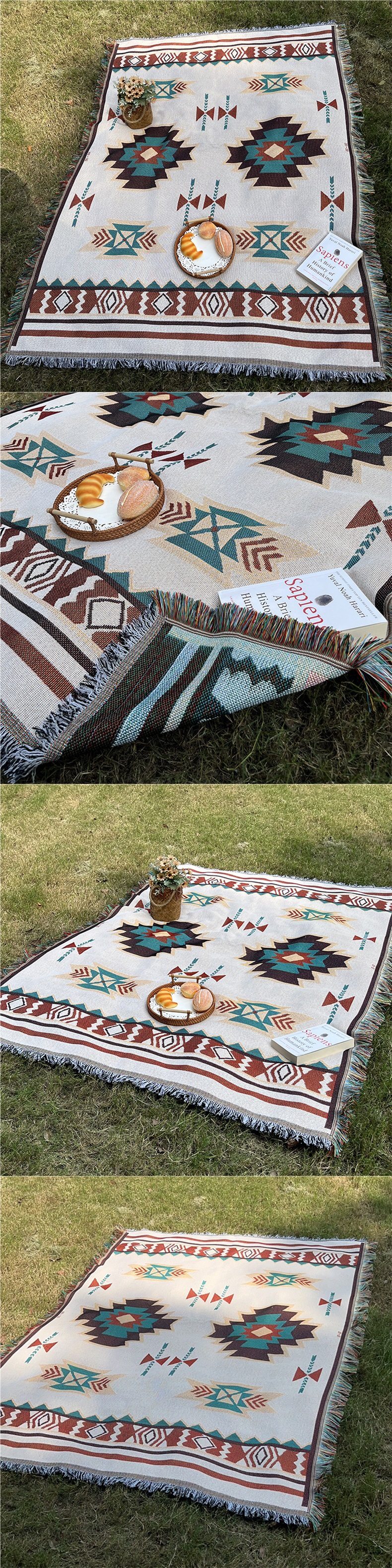 Picnic Mat Tent Moisture-Proof Mat Bohemian Style Multi-Functional Thread Blanket Cotton Yarn Nap Blanket Outdoor Camping Blanket