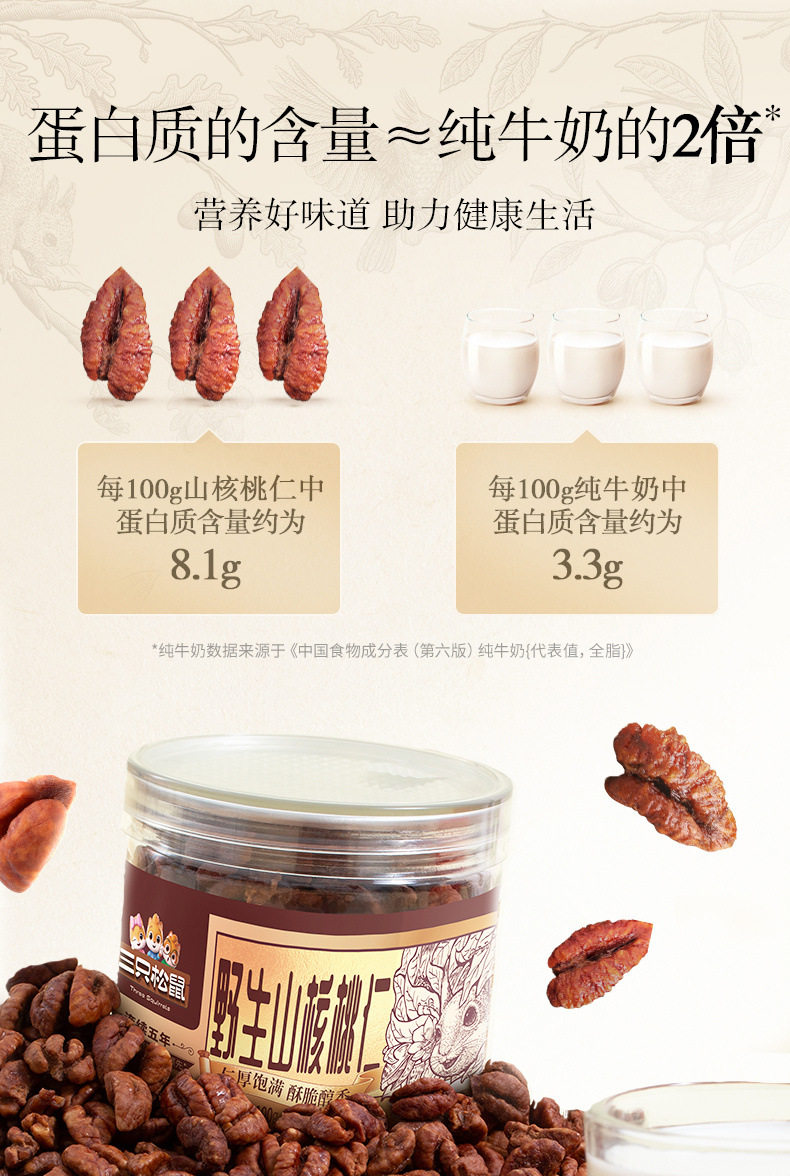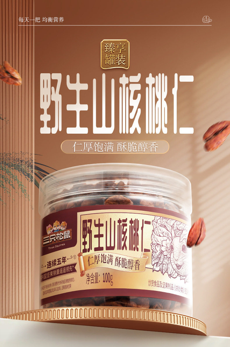 | Packaging specifications | [hot sale] wild pecan kernels 100g*3 cans,[value] wild pecan kernels 100g*5 cans |