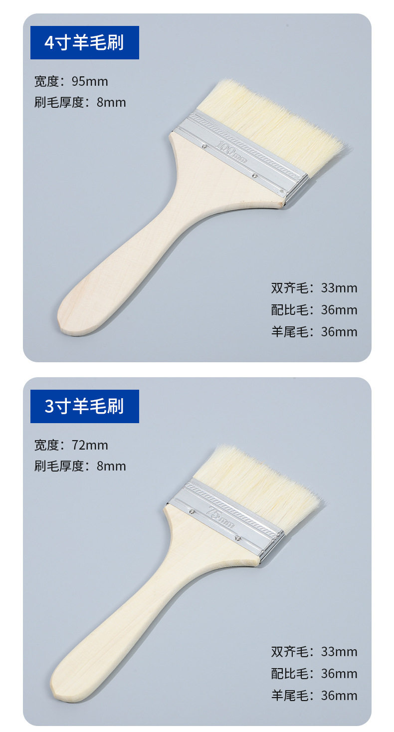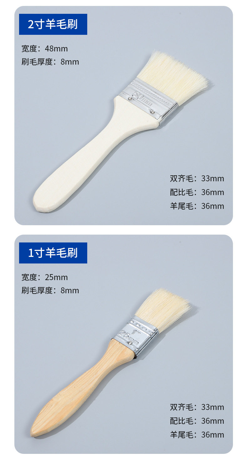 | Specifications and models | Wood color; 1inch standard double hair,Wood color; 2inch standard double hair,Wood color; 3inch standard double hair,Wood color; 4inch standard double hair,Wood color; 5inch standard double hair,Wood color; 1inch ratio wool,Wood color; 2inch ratio wool,Wood color; 3inch ratio wool,Wood color; 4inch ratio wool,Wood color; 5inch ratio wool,Wood color; 1inch high-quality sheep tail hair,Wood color; 2inch high-quality sheep tail hair,Wood color; 3inch high-quality sheep tail hair,Wood color; 4inch high-quality sheep tail hair,Wood color; 5inch high-quality sheep tail hair |