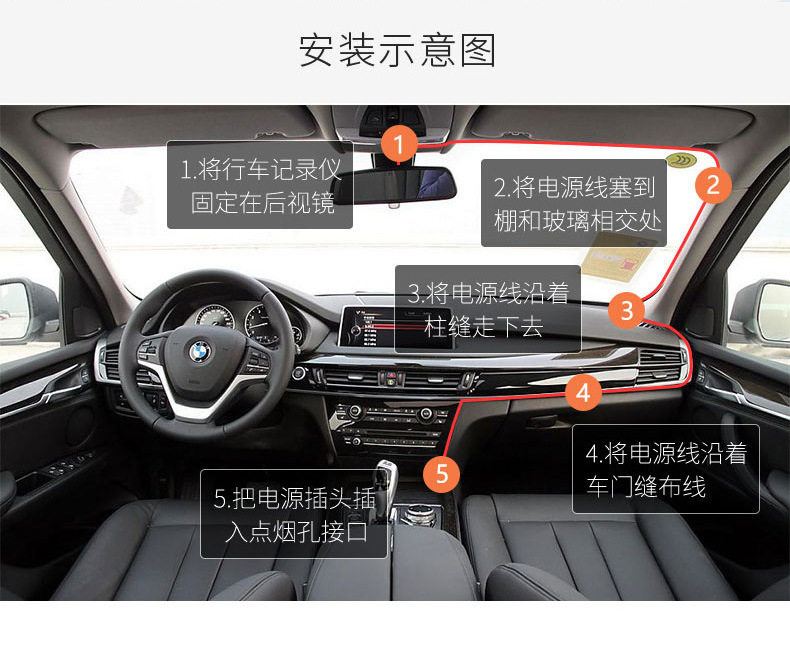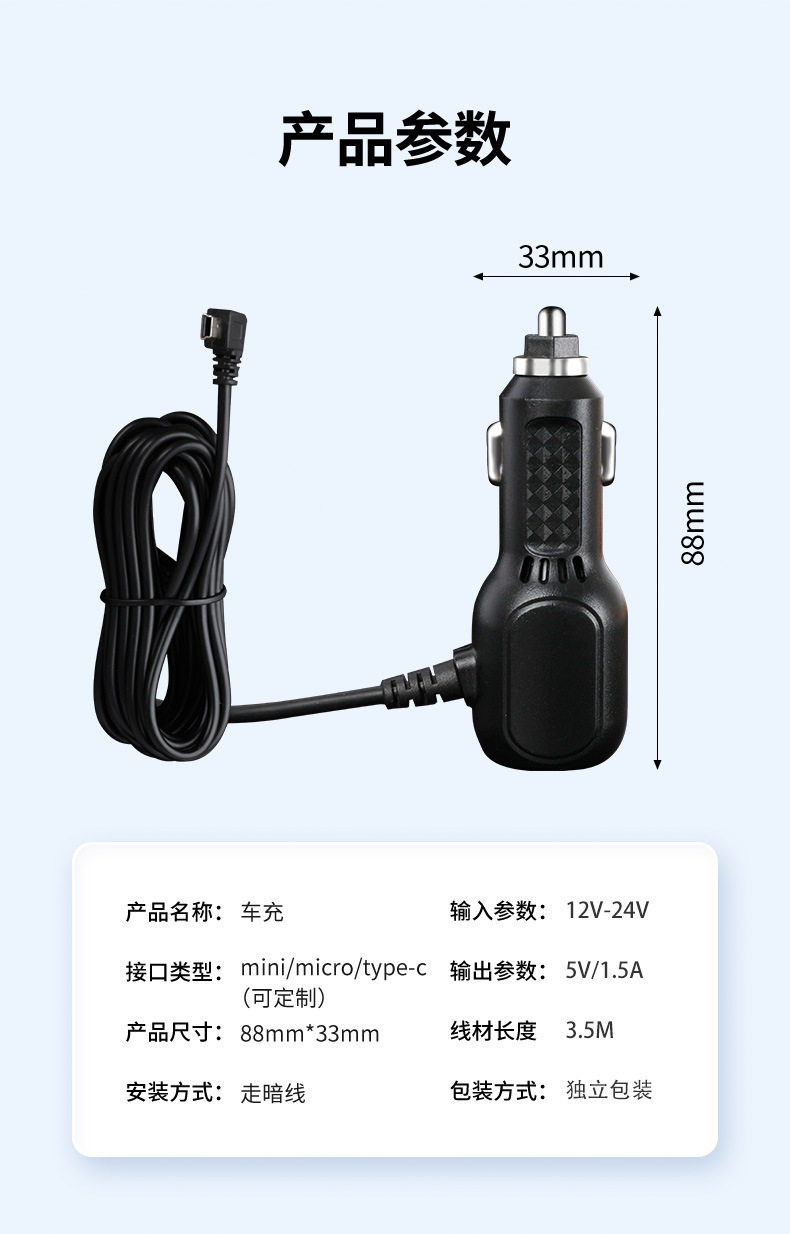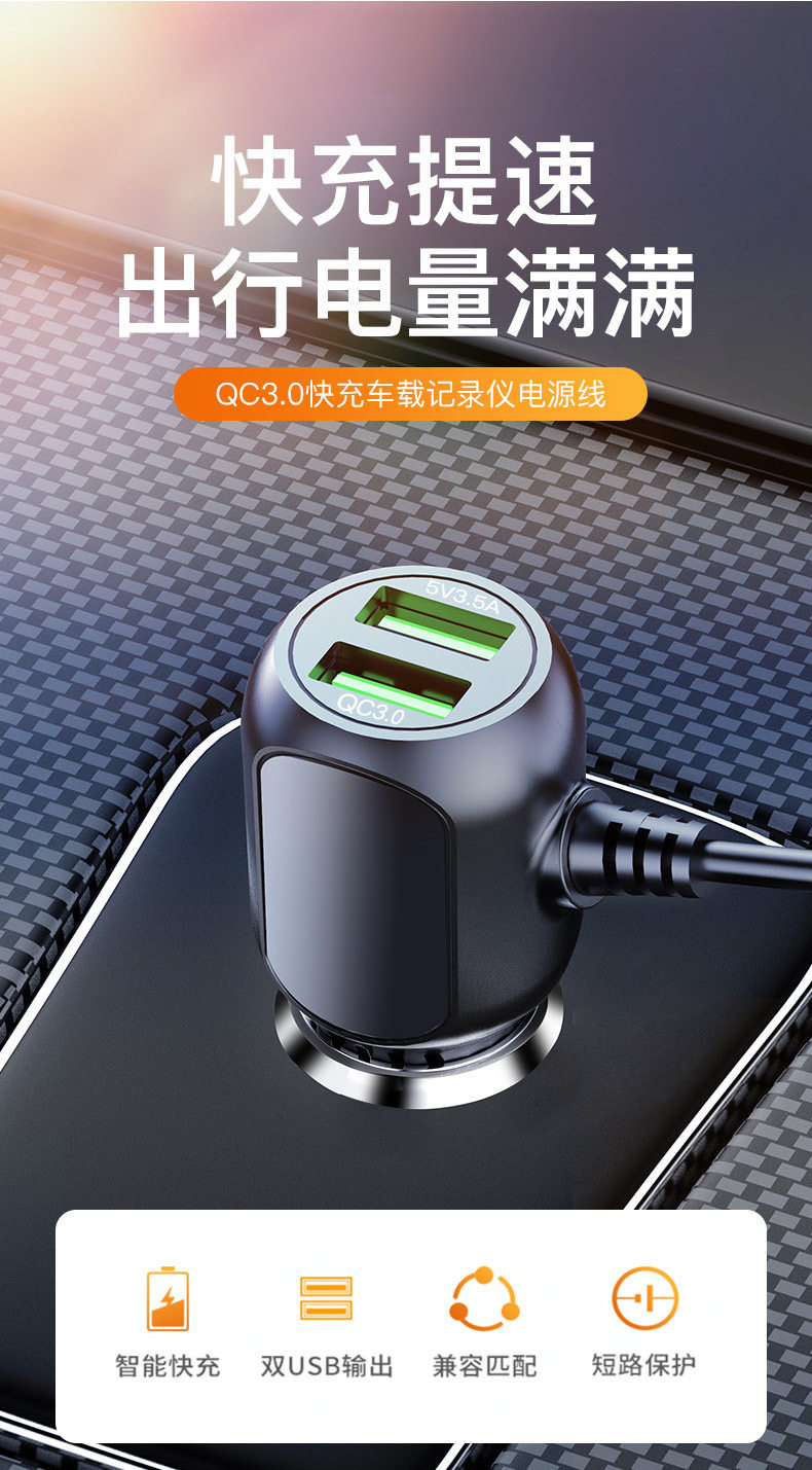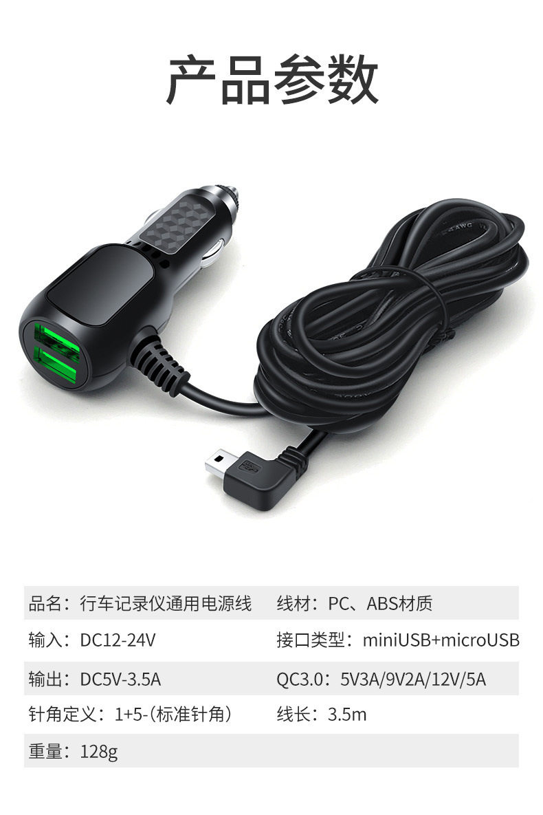 Driving Recorder Power Cord USB Car Charger Cigarette Lighter Car Voltage Reducer Cable Car-Mounted 3.5m
