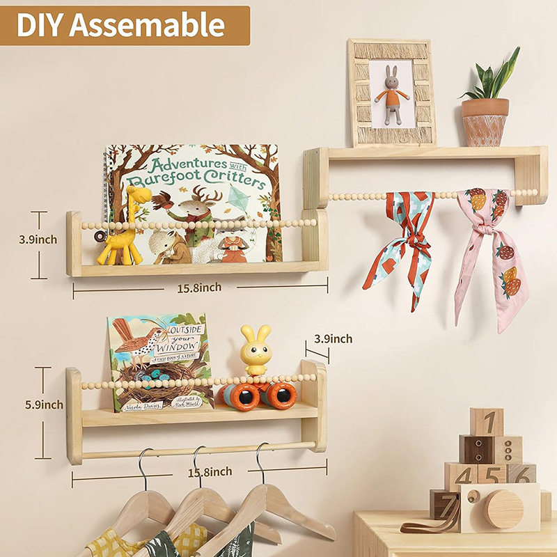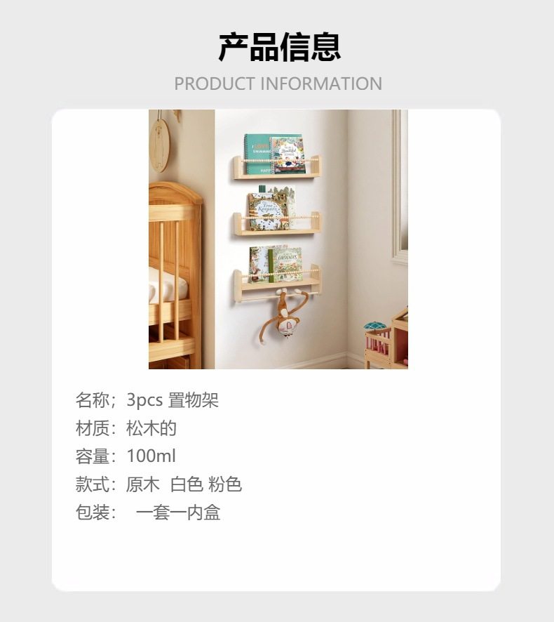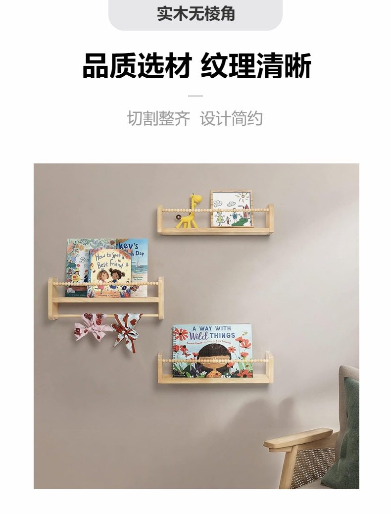 Cross-Border Solid Wood Children's Room Picture Book Shelf Multi-Layer Children's Picture Book Storage Rack Wall-Mounted Bookshelf