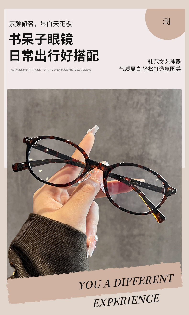 Tortoiseshell Leopard Print Glasses Frame 8171 Plain Round Nerd Style Women's Glasses Tr90 Ultra-Light Frame High-End