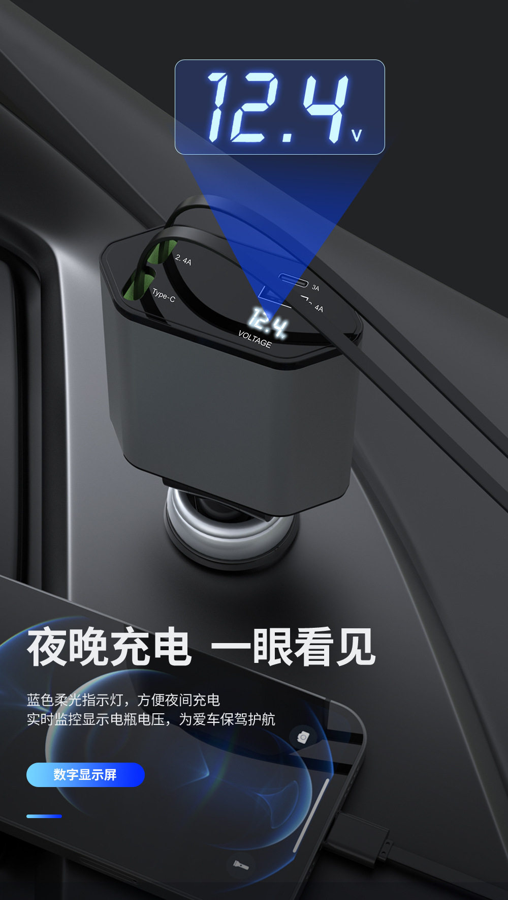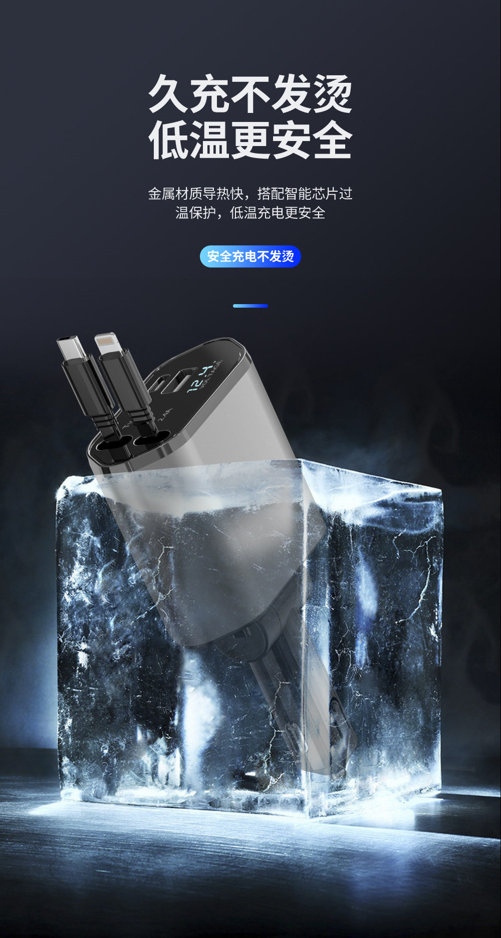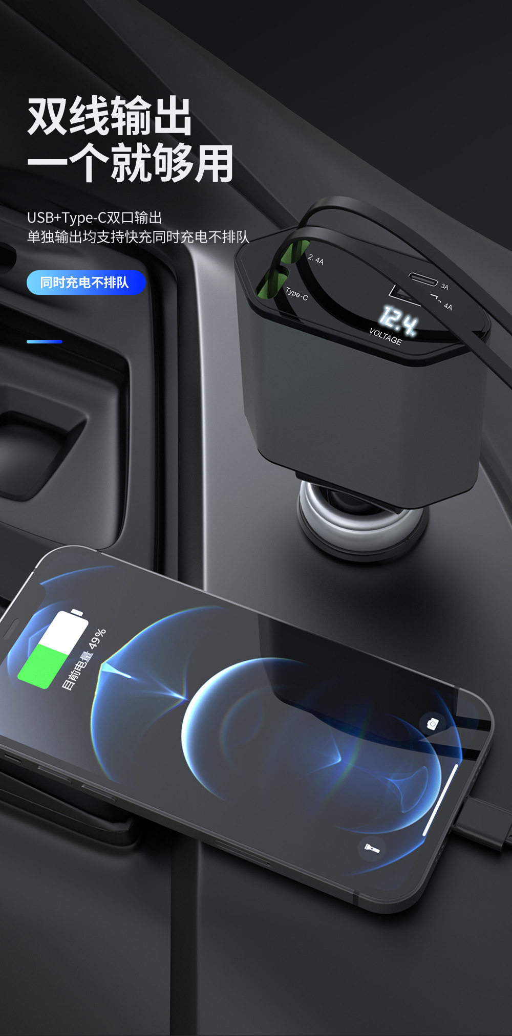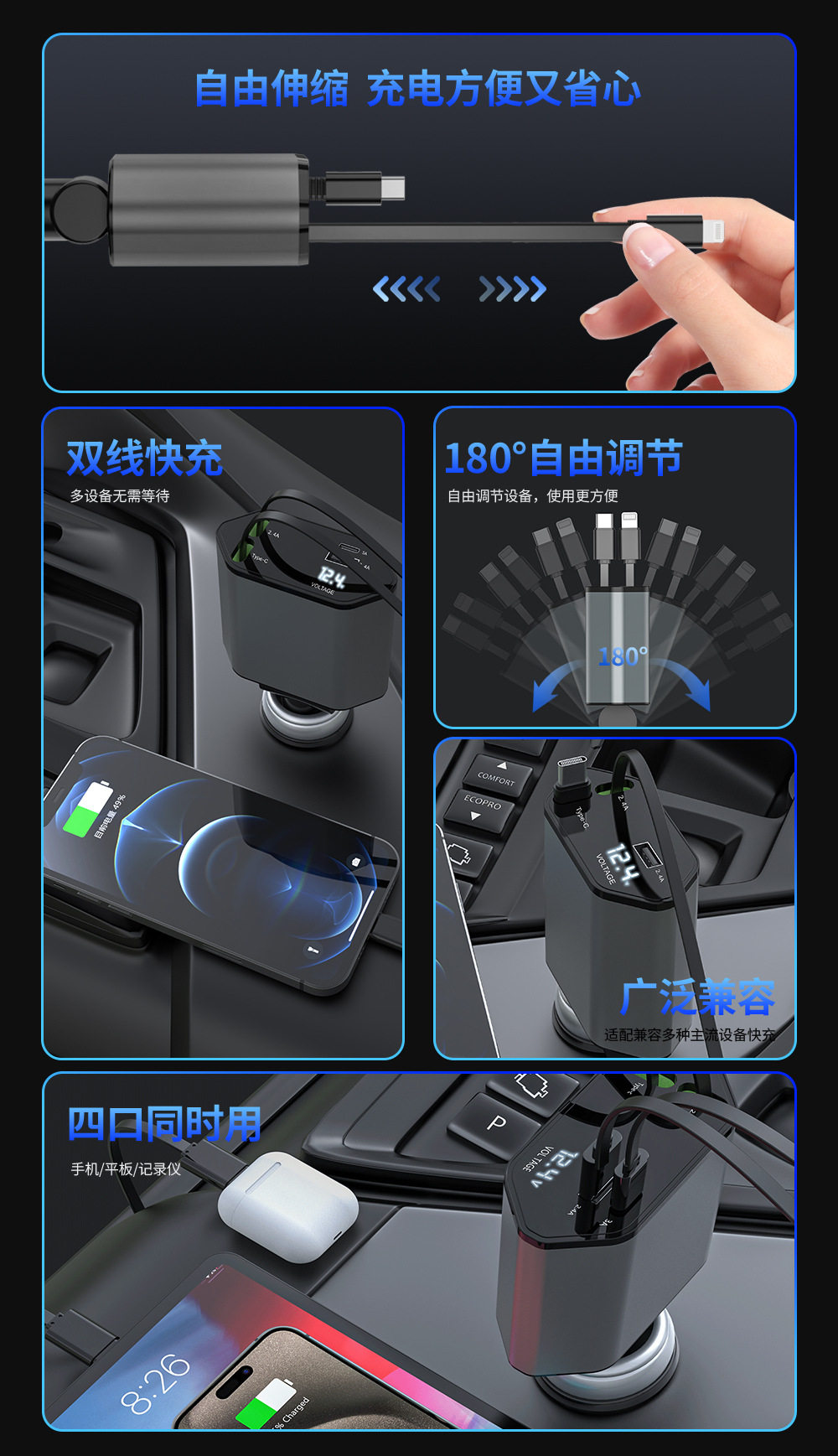 Four-in-one car charger super fast charger car cigarette lighter conversion socket for Apple 16 Huawei mobile phone
