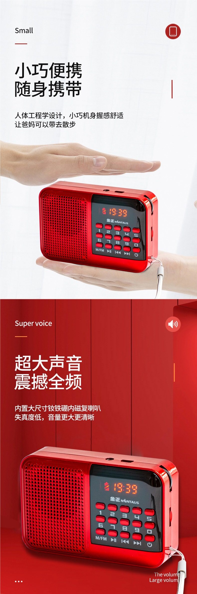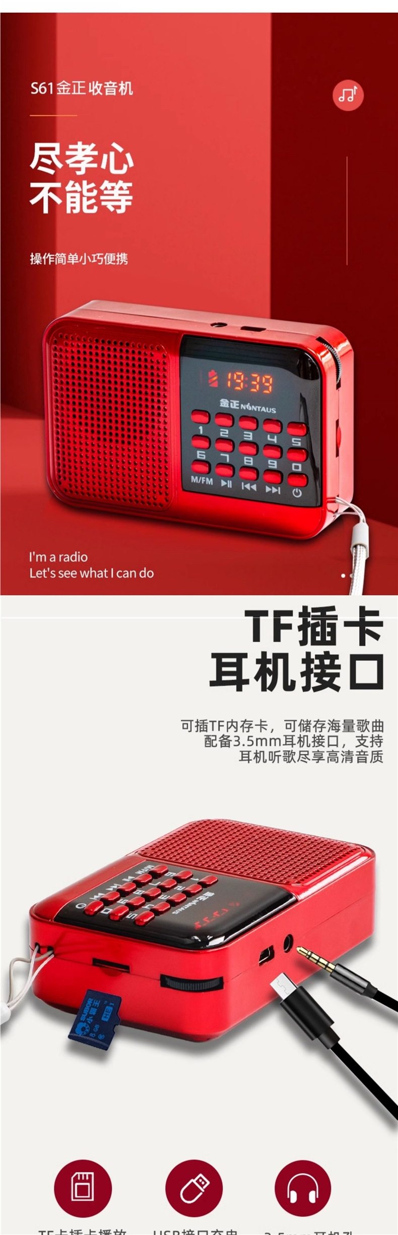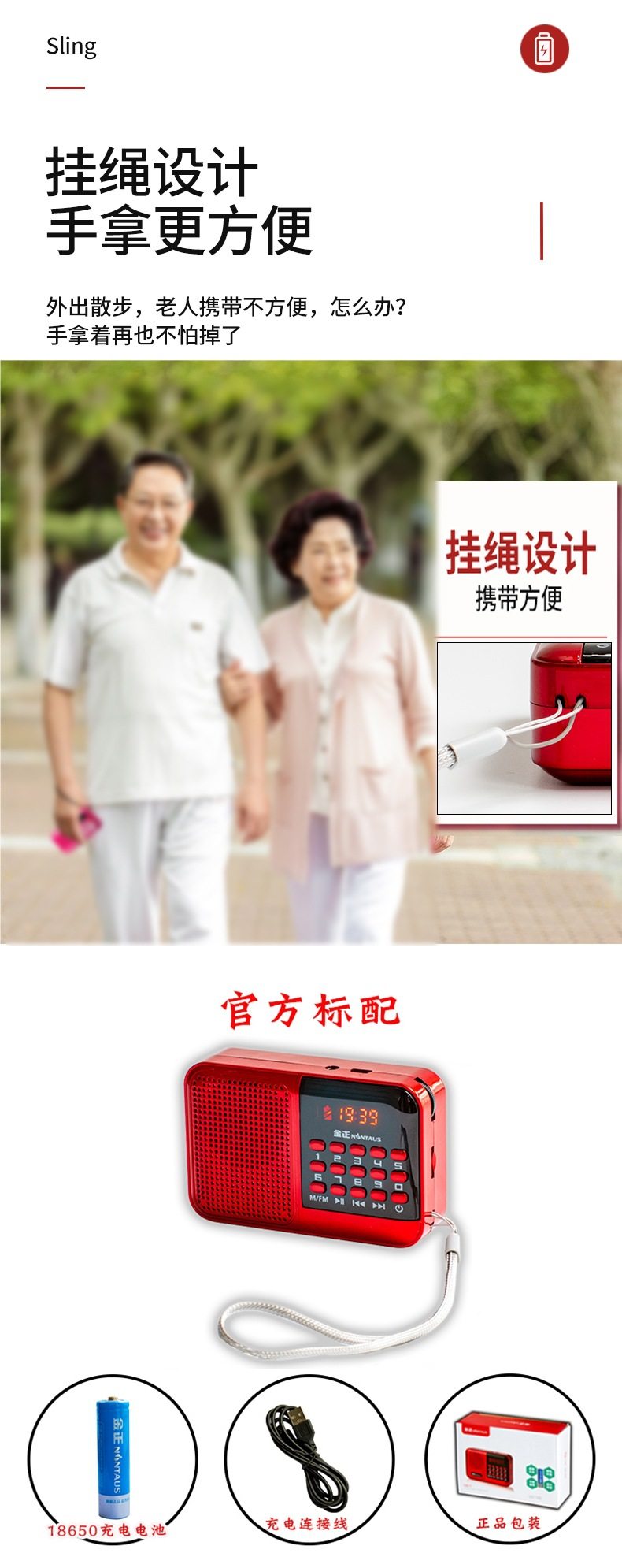 Card small speaker radio for the elderly morning exercise, walking, listening to songs, opera, storytelling, children's story MP3 player