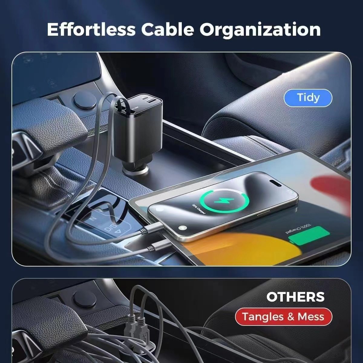 Cross-border new car charger 120W super fast charging telescopic line four-in-one cigarette lighter car charger factory outlet
