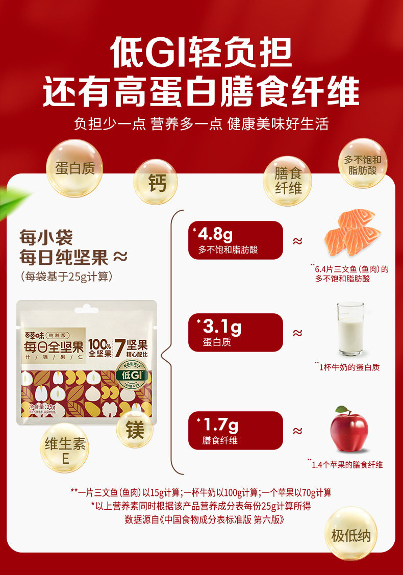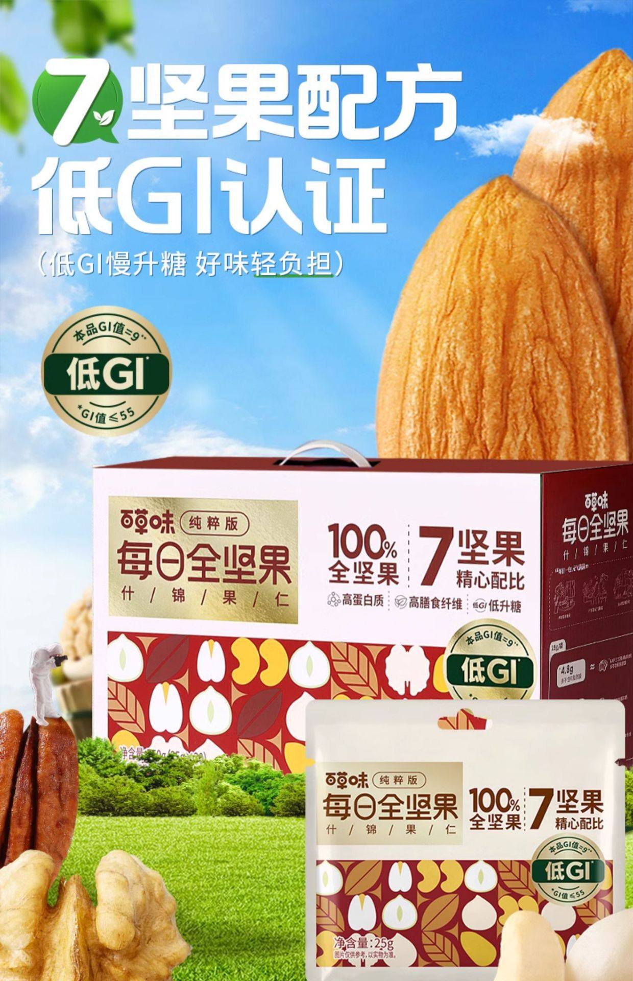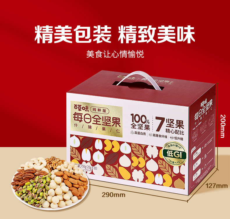 Packaging specifications Produced and shipped within 7 days [7 kinds of pure nuts] 750g/30 packs - low gi slow glycemic,[original zhen fruit whole nuts 750g/30 packs] low gi and light burden