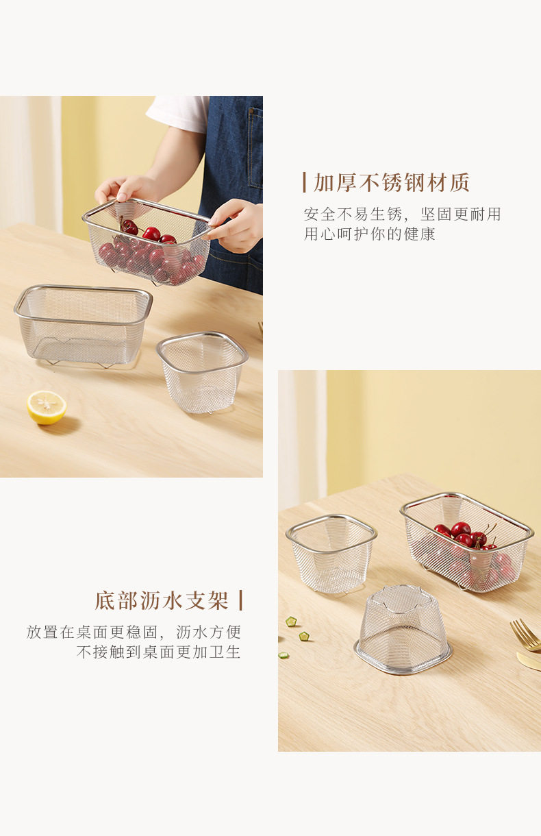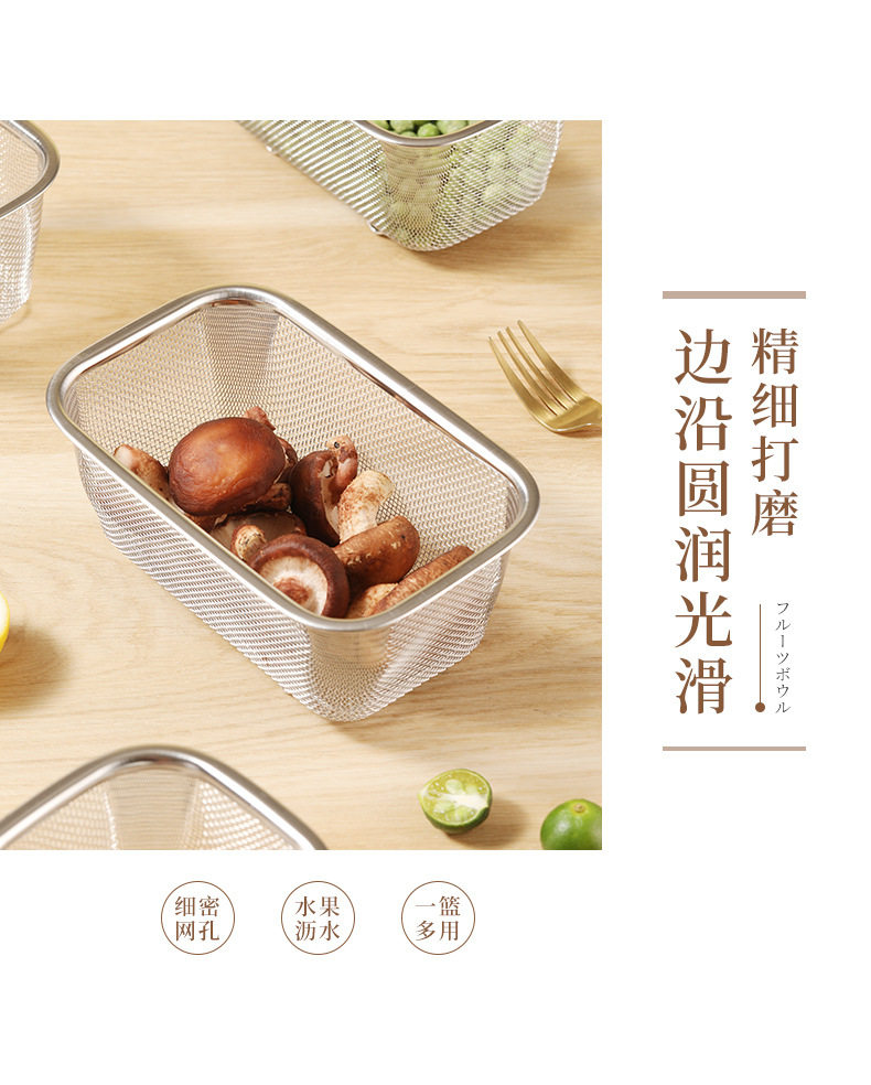Stainless Steel Draining Basket Kitchen Fruit and Vegetable Mesh Basket Rectangular Vegetable Washing Basket Fruit Basket Drying Leakage Basin Sieve Basket