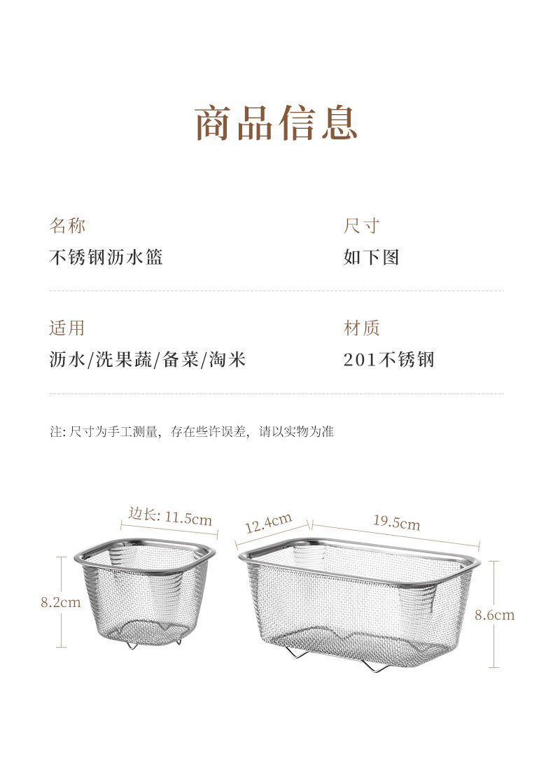 | Color | Square mesh basket-mini 1 item number: 8069,Square mesh basket-large long style 1 item number: 8070,13cm conical mesh basket-1 item number: 8086,14cm conical mesh basket-1 item number: 8094,16cm conical mesh basket-1 item number: 8087,14cm mini handleless mesh basin-1 item number: 8090,14cm mini mesh basin with handle - 1 item number: 8091,18cm mesh basin-1 item number: 8074,22cm mesh basin-1 item number: 8075,26cm mesh basin-1 item number: 8076,Square mesh basket item number: 8116,Large hole mesh basket-small size 1 item number: 8117,Large hole mesh basket-medium size 1 item number: 8118,Large hole mesh basket-large size 1 item number: 8119,Large hole mesh basket-1 long strip item number: 8120,Telescopic large hole mesh basket-small size 1 item number: 8151,Telescopic large hole mesh basket-medium size 1 item number: 8152,Telescopic large hole mesh basket-large size 1 item number: 8153,Telescopic large hole mesh basket-long strip 1 item number: 8154,Triangular mesh basket item number: 8144 |