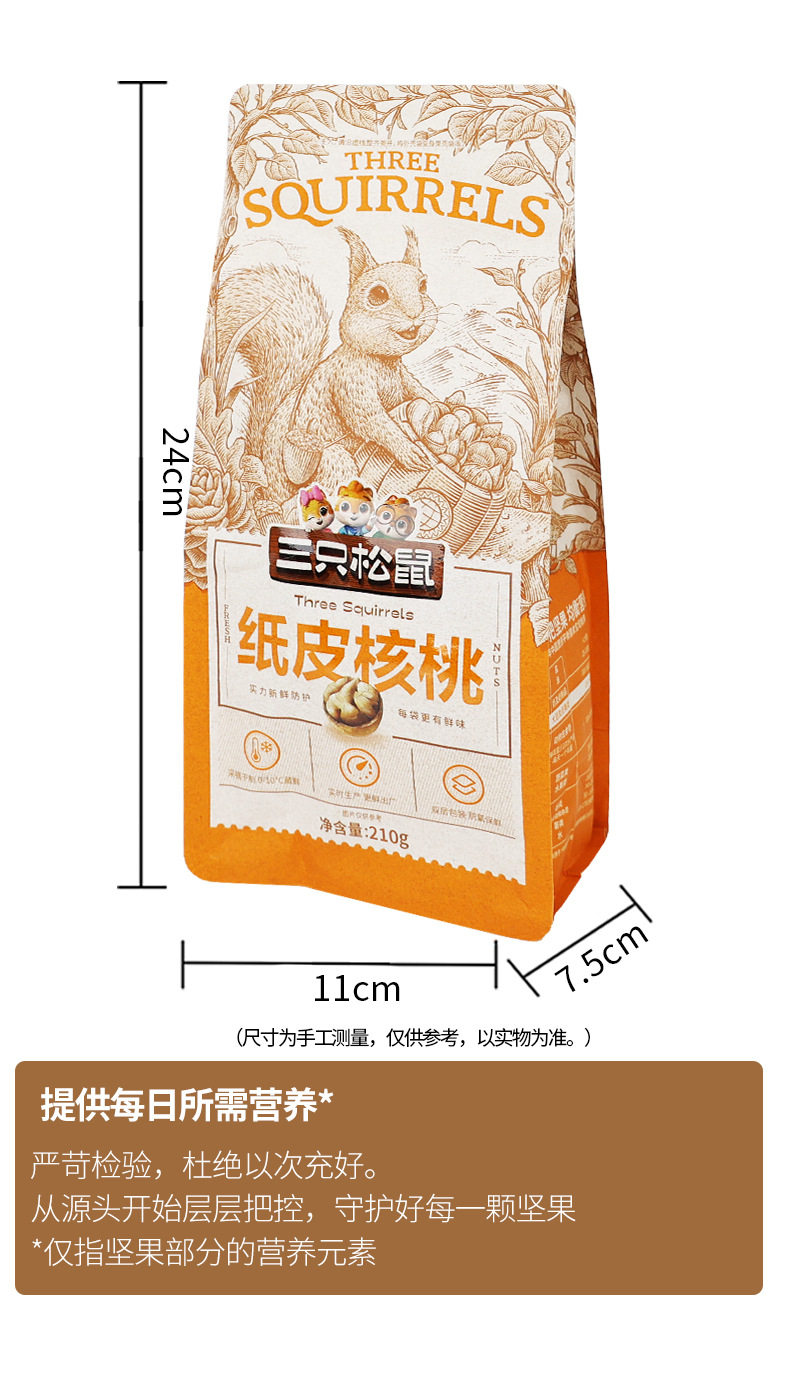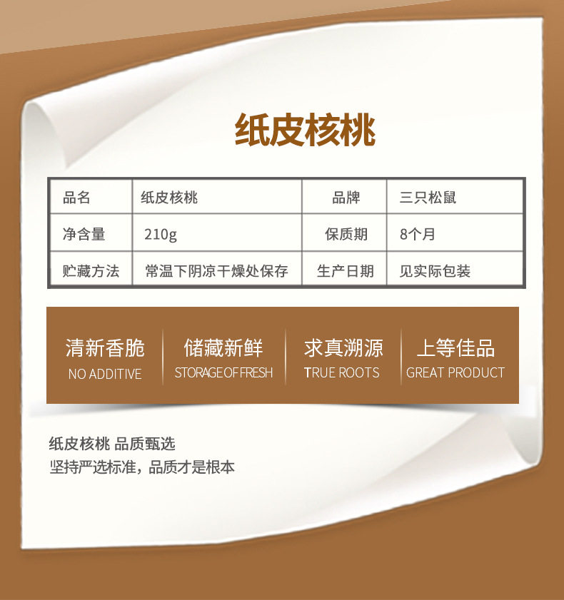 | Packaging specifications | Paper-skinned walnuts 210g |
