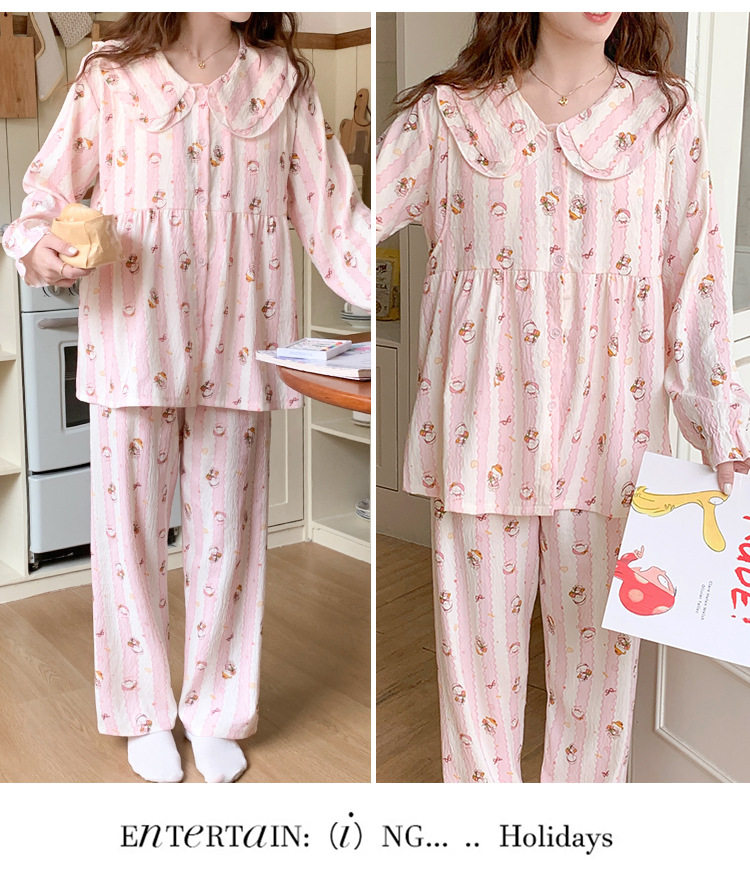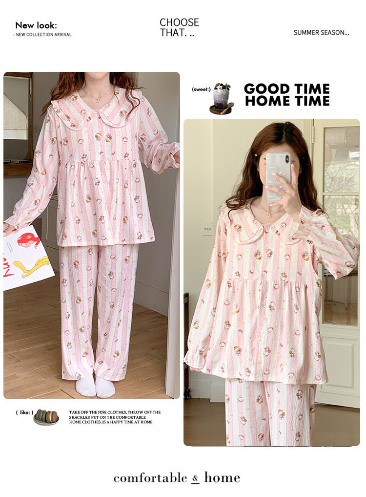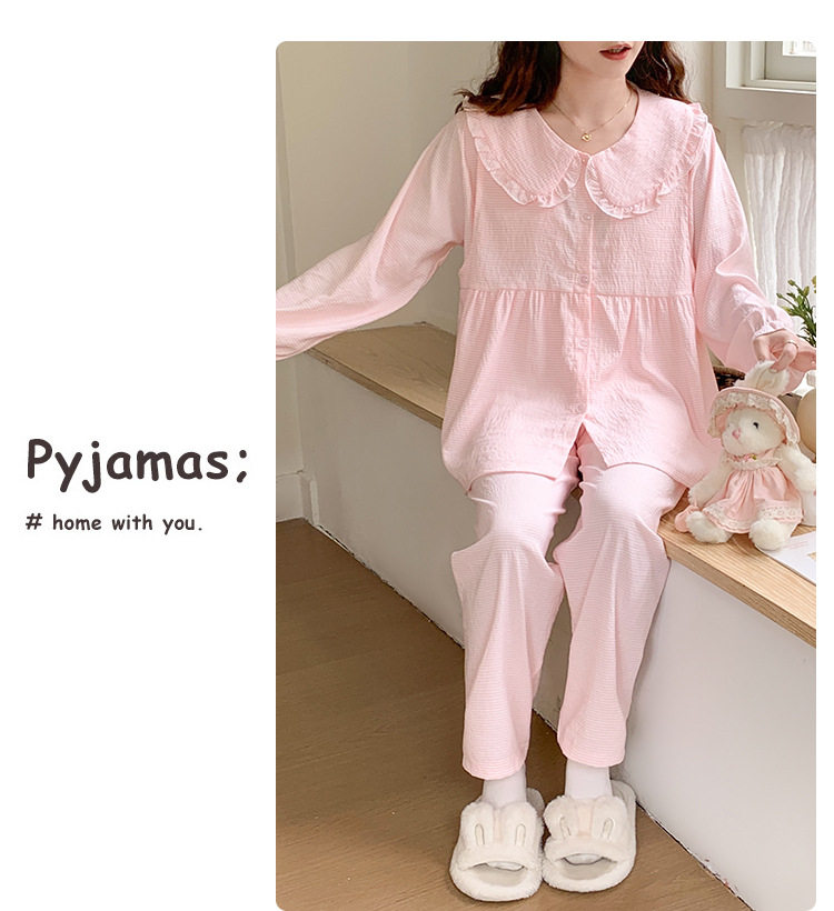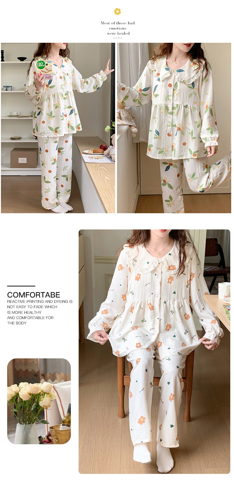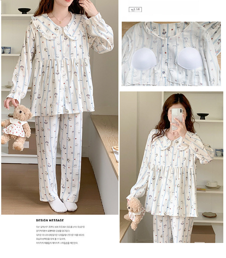Spring and Summer Maternity Pajamas Cardigan Long-Sleeved Pants Loose Postpartum Nursing Clothes Set Confinement Home Clothes with Breast Pads