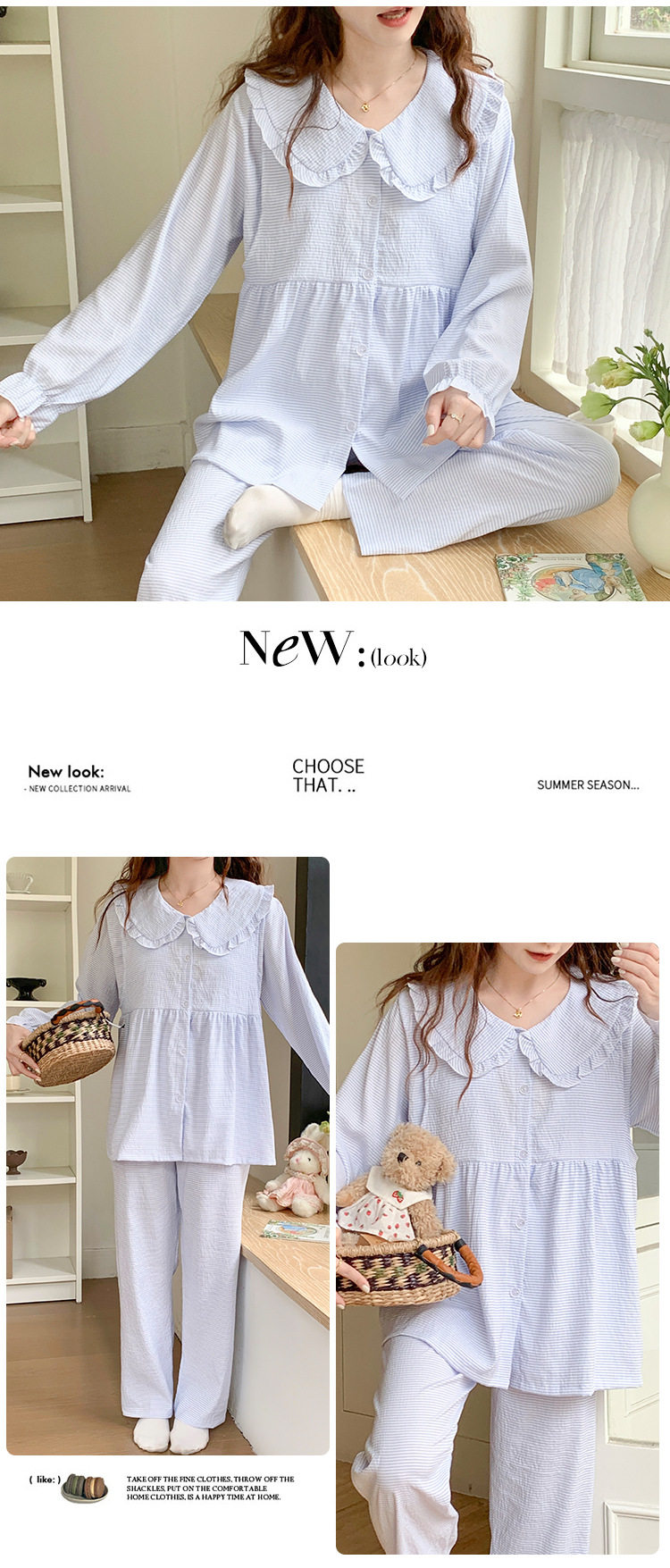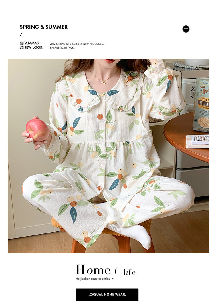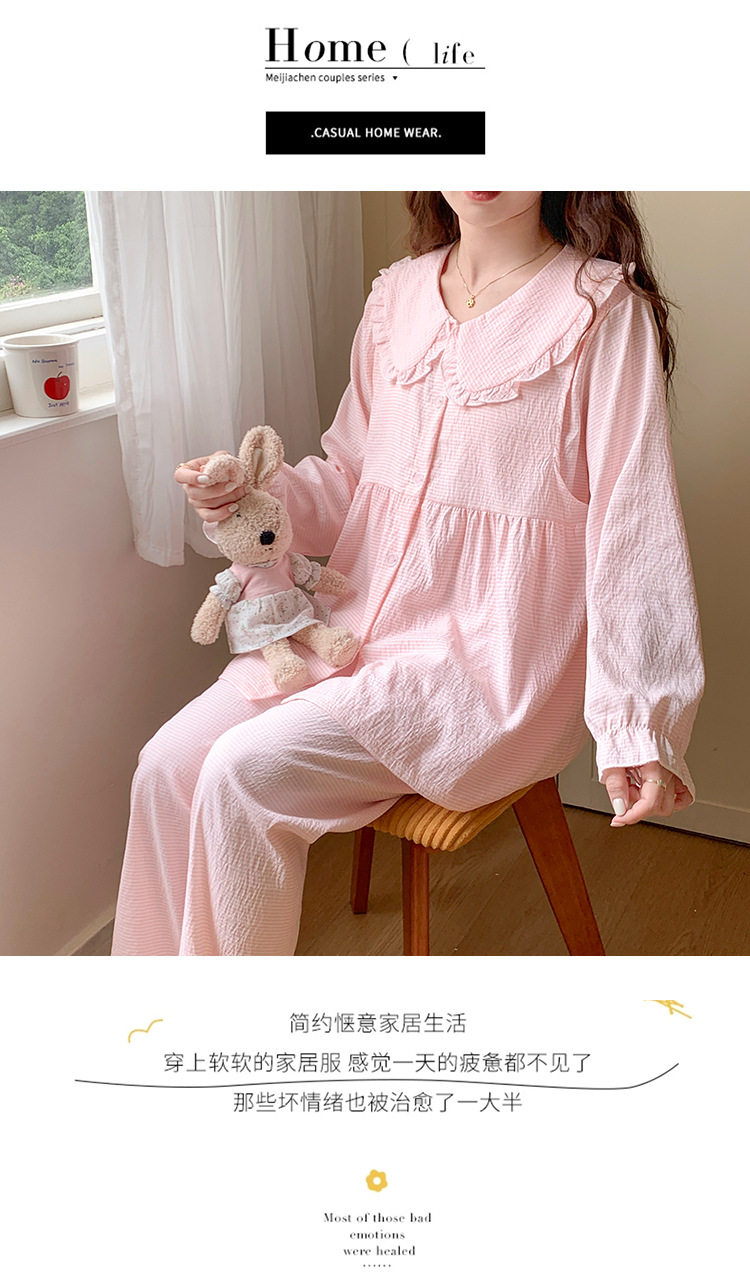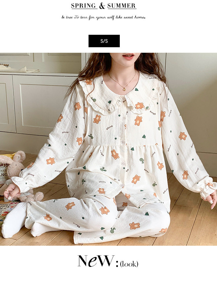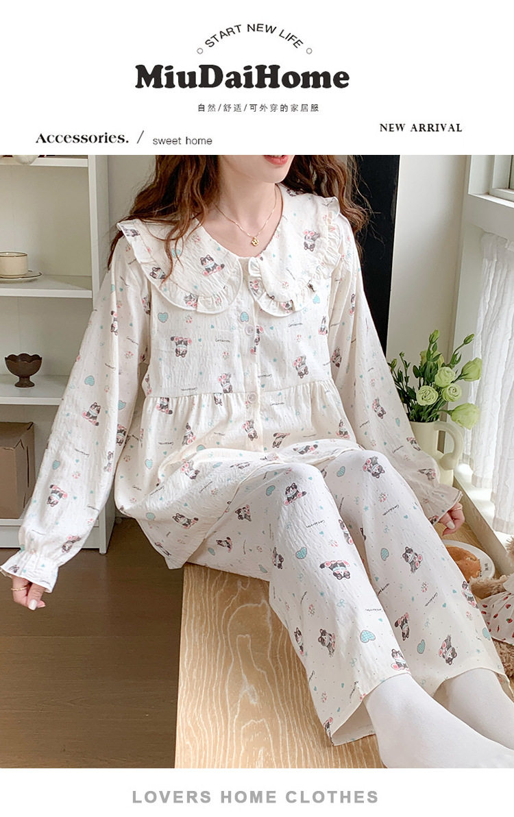 Spring and Summer Maternity Pajamas Cardigan Long-Sleeved Pants Loose Postpartum Nursing Clothes Set Confinement Home Clothes with Breast Pads