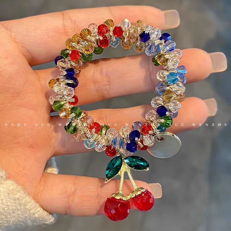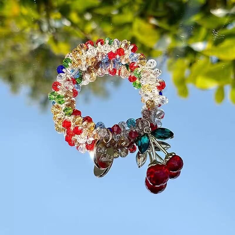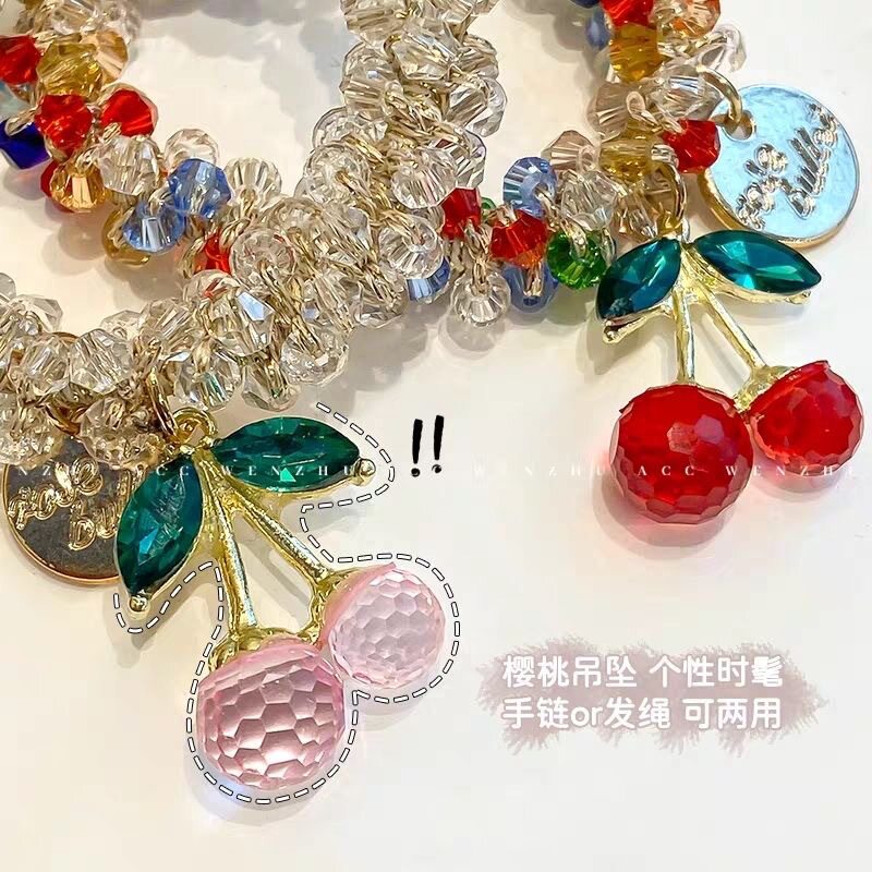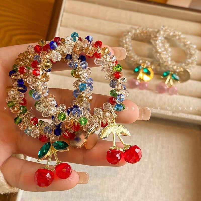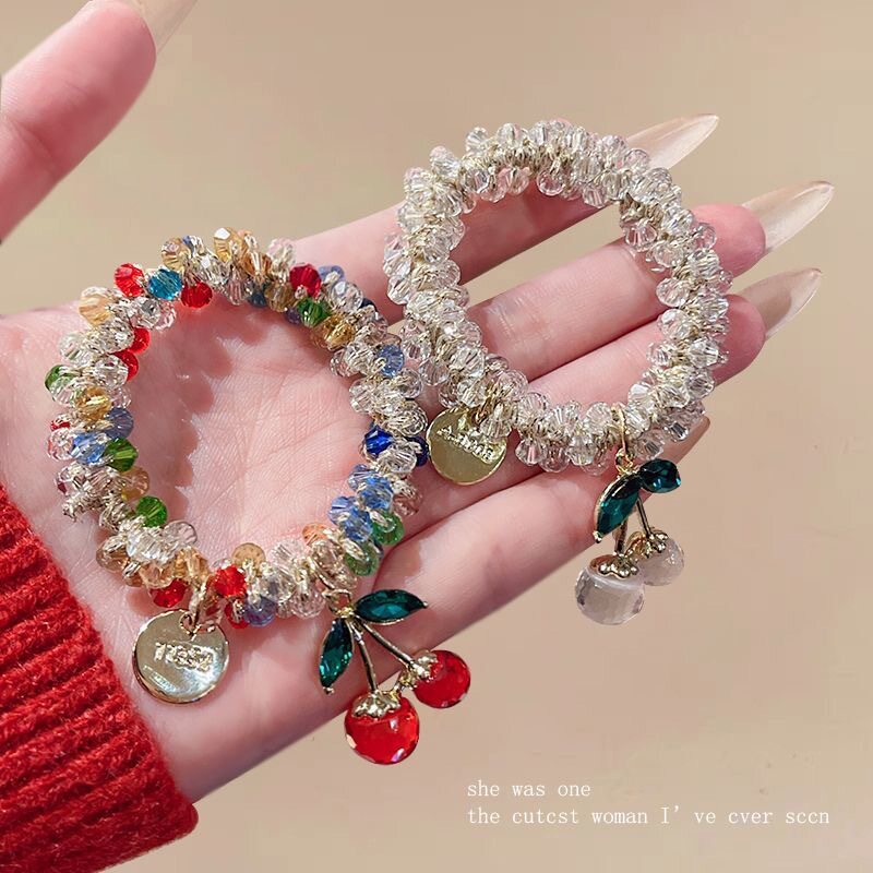 New Cherry Hair Rope Women's Payertail Ball Hair Ring pink Crystal Rubber Tendon High Elastic Hair Ring Tie Rope