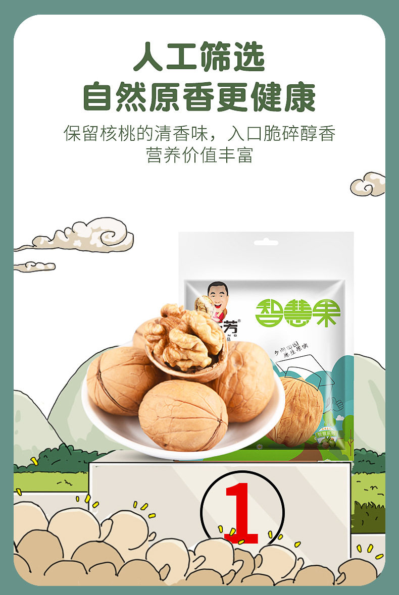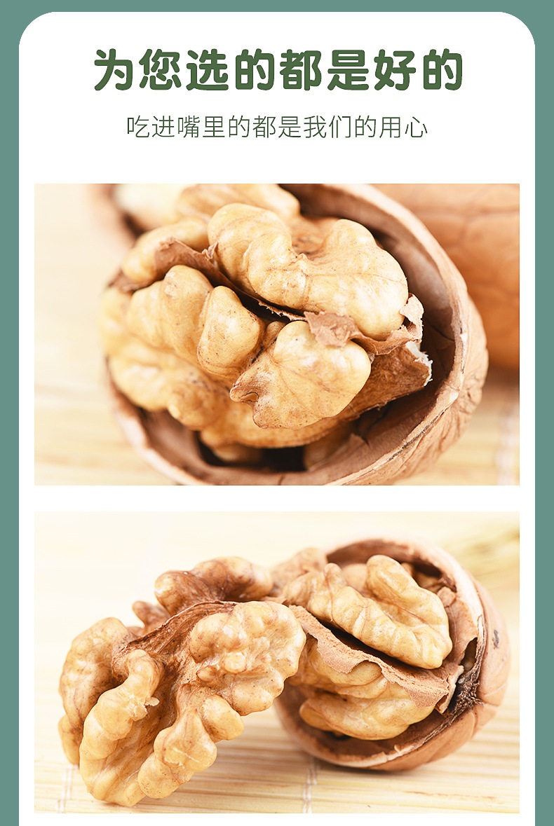 | Packaging specifications | Selected washed 185 paper-skinned walnuts 500g*2 bags |