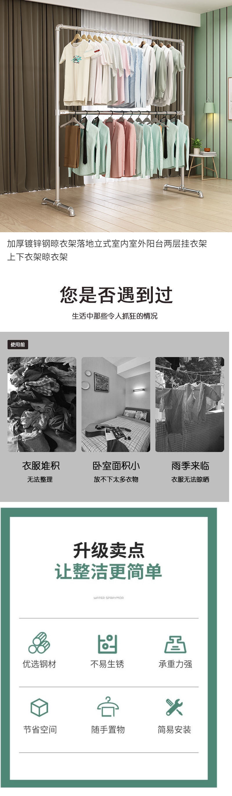 Thickened Galvanized Steel Clothes Drying Rack Floor-Standing Vertical Indoor and Outdoor Balcony Two-Layer Clothes Hanger Upper and Lower Clothes Hanger Clothes Drying Rack