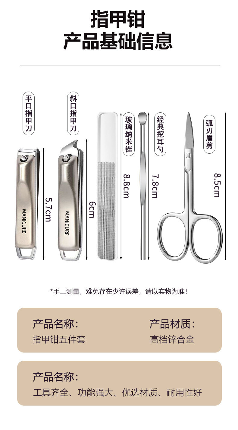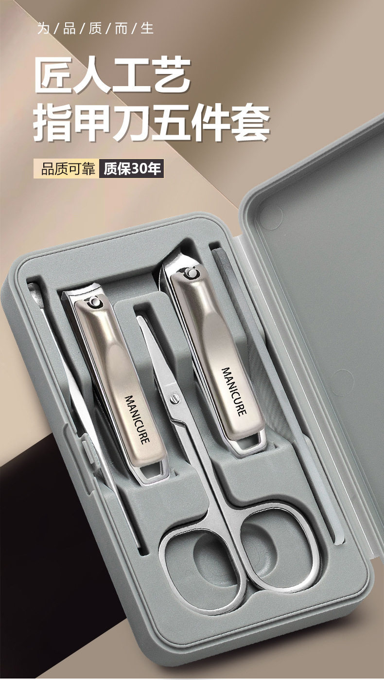 New High-End Nail Clipper Five-Piece Set, Nail Clipper Set, Eyebrow Trimming Scissors, Nail File, Ear Scoop, Manicure Tools