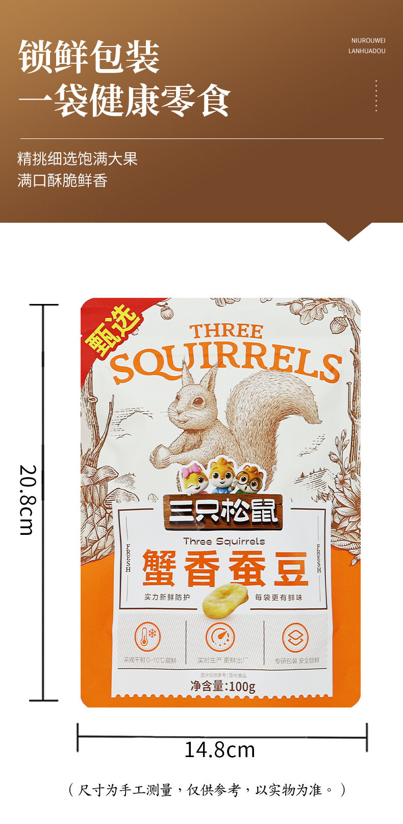 Three Squirrels Crab Fragrant Broad Beans 100g Casual Snacks Crispy Ready-To-Eat Snacks Dried Fruit Beans Roasted Seeds Free Shipping