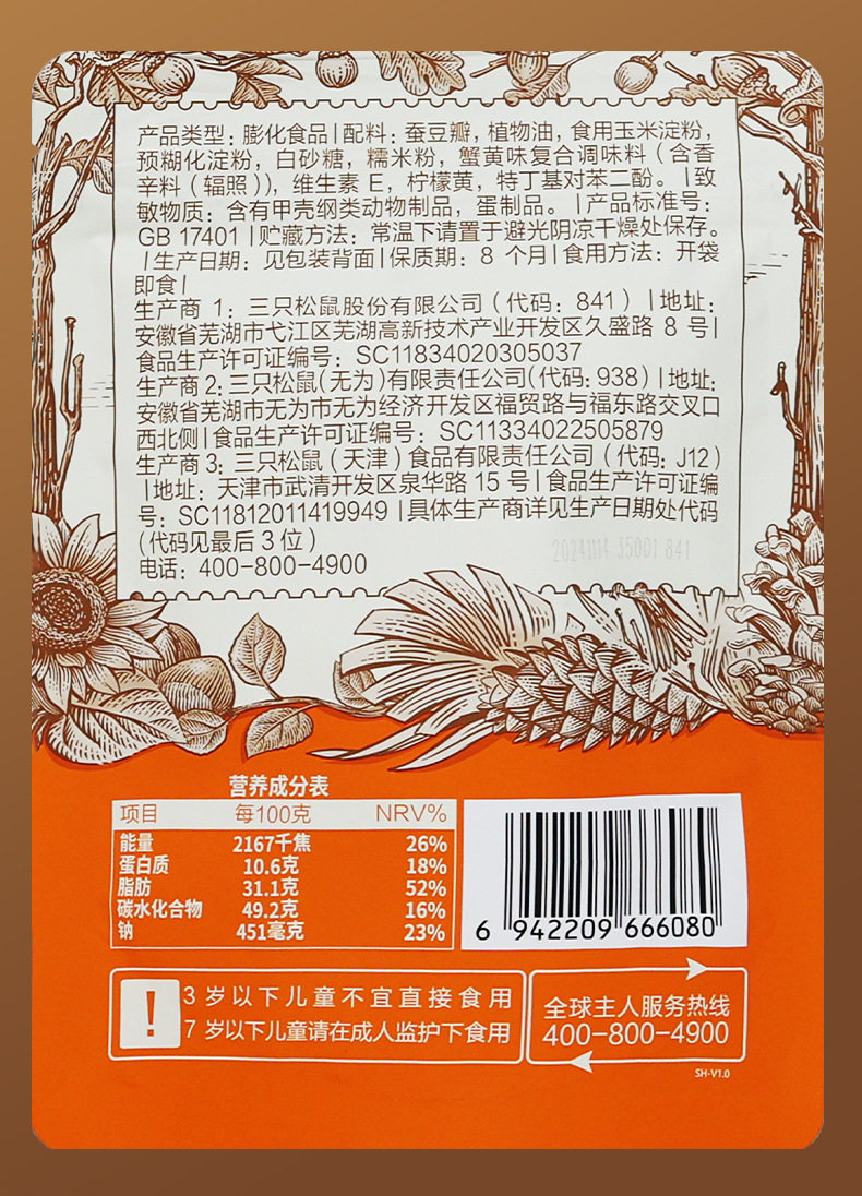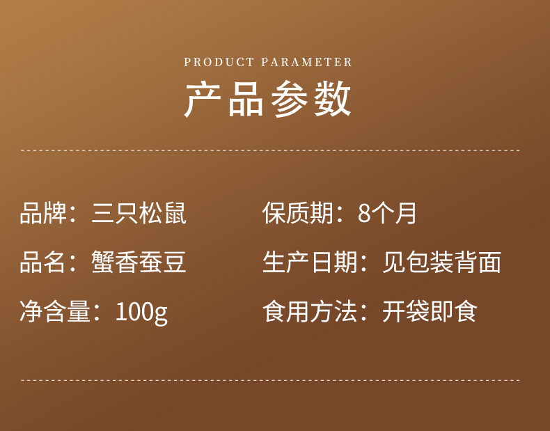 | Packaging specifications | Crab-flavored broad beans 100g |