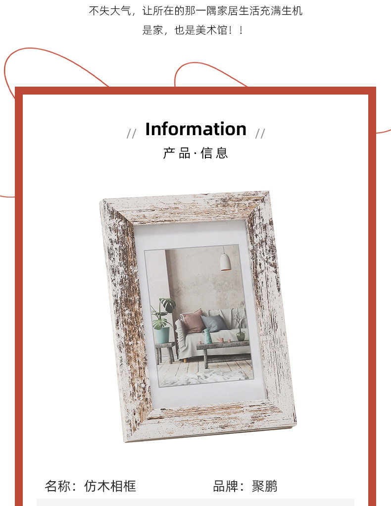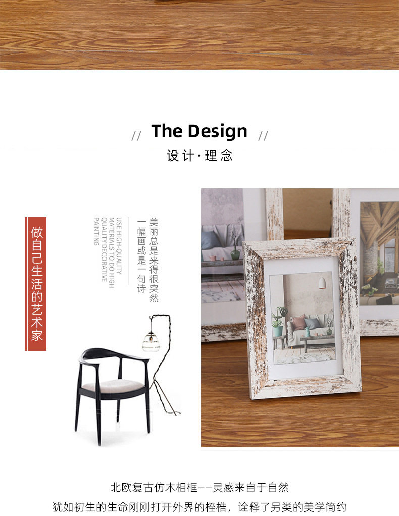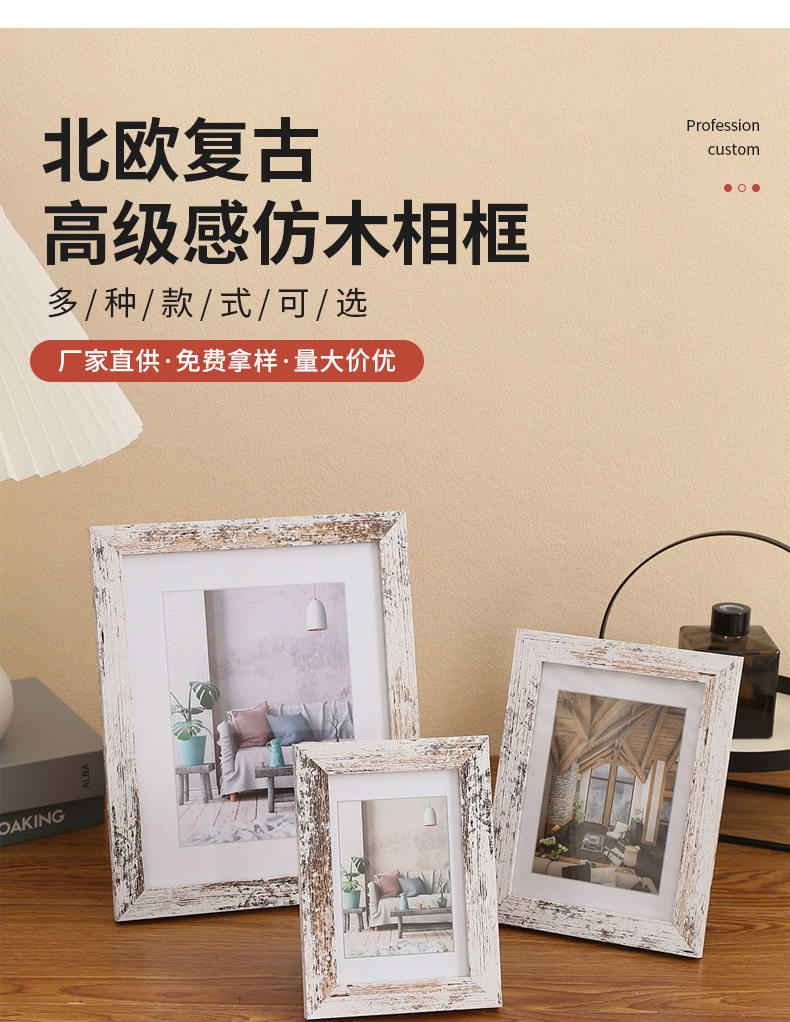 Cross-Border Supply of Nordic Retro Decorative Picture Frames, Framed Wall-Mounted Imitation Wood Picture Frames, Tabletop Square Retro Picture Frames