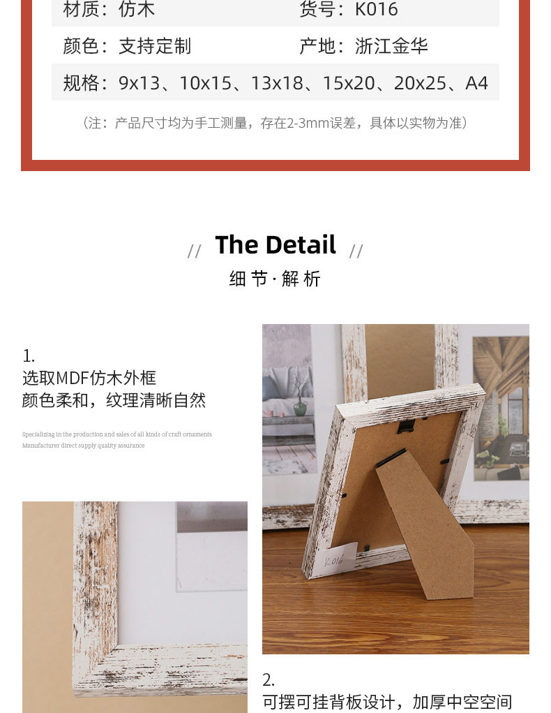 | Frame size | Inner diameter: 9x13cm ( 5inch ) horizontal and vertical table,Inner diameter: 10x15cm ( 6inch ) horizontal and vertical table,Inner diameter: 13x18cm ( 7inch ) horizontal and vertical table,Inner diameter: 15x20cm ( 8inch ) horizontal and vertical table,Inner diameter: 20x25cm ( 10inch ) horizontal and vertical table,Inner diameter: 21x29.7cm (a4) horizontal and vertical table |