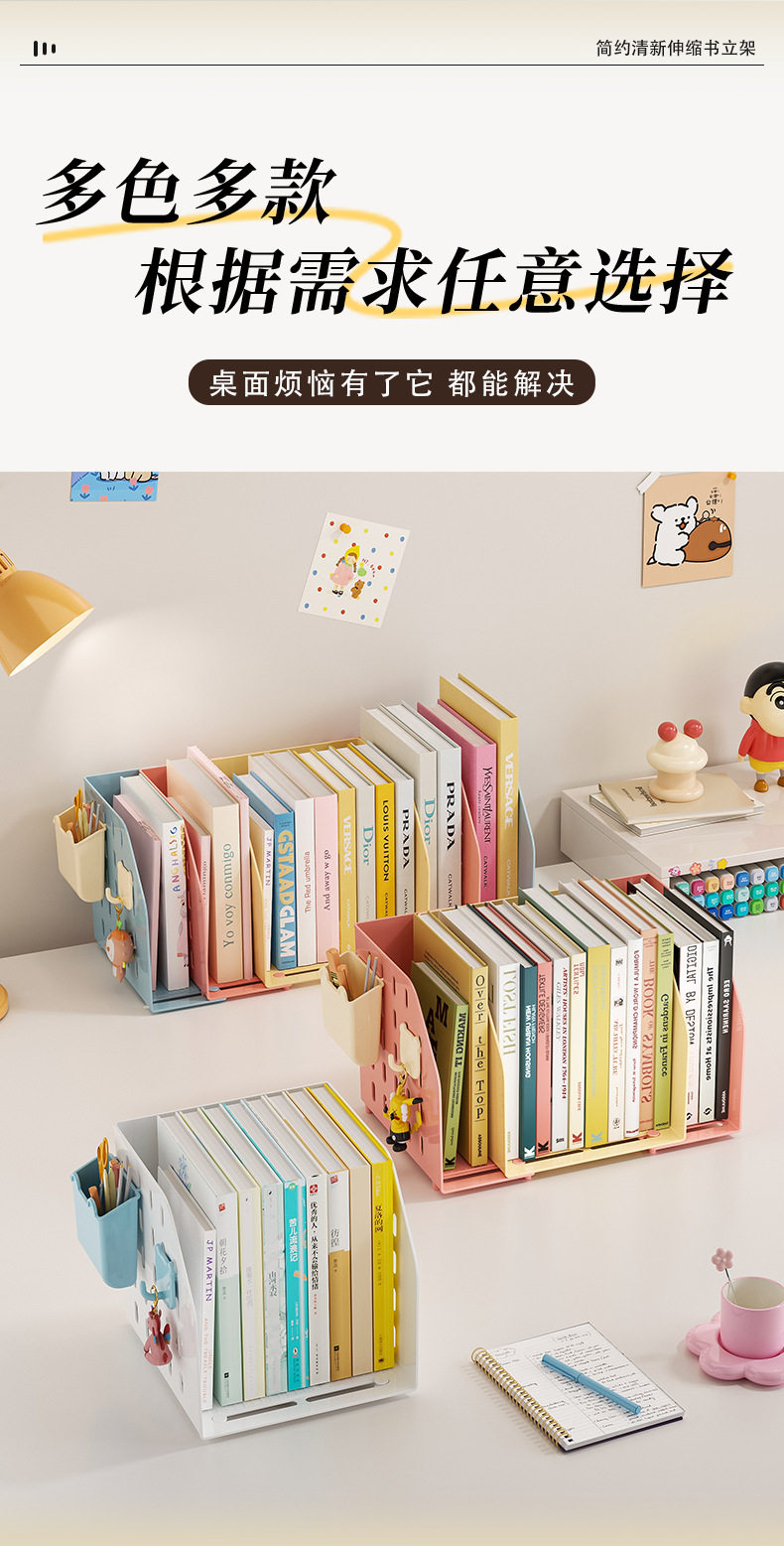 Telescopic Book Stand Reading Rack Book Holder Desktop Bookshelf Desktop Fixed Book Storage Artifact Plastic Book Divider
