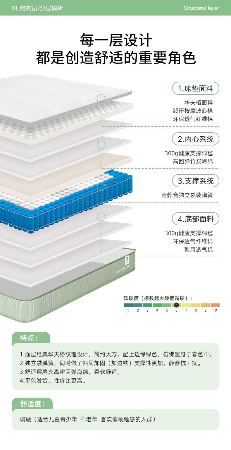 Smart Bed with Silent Independent Springs, Bamboo Charcoal Cotton, Moderate Firmness, Suitable for Five-Star Hotels and Guesthouses, Simmons Mattress