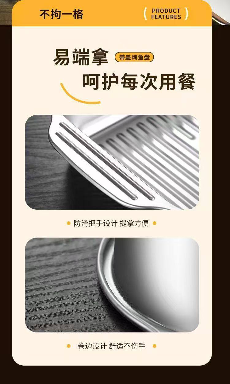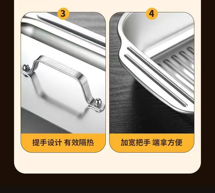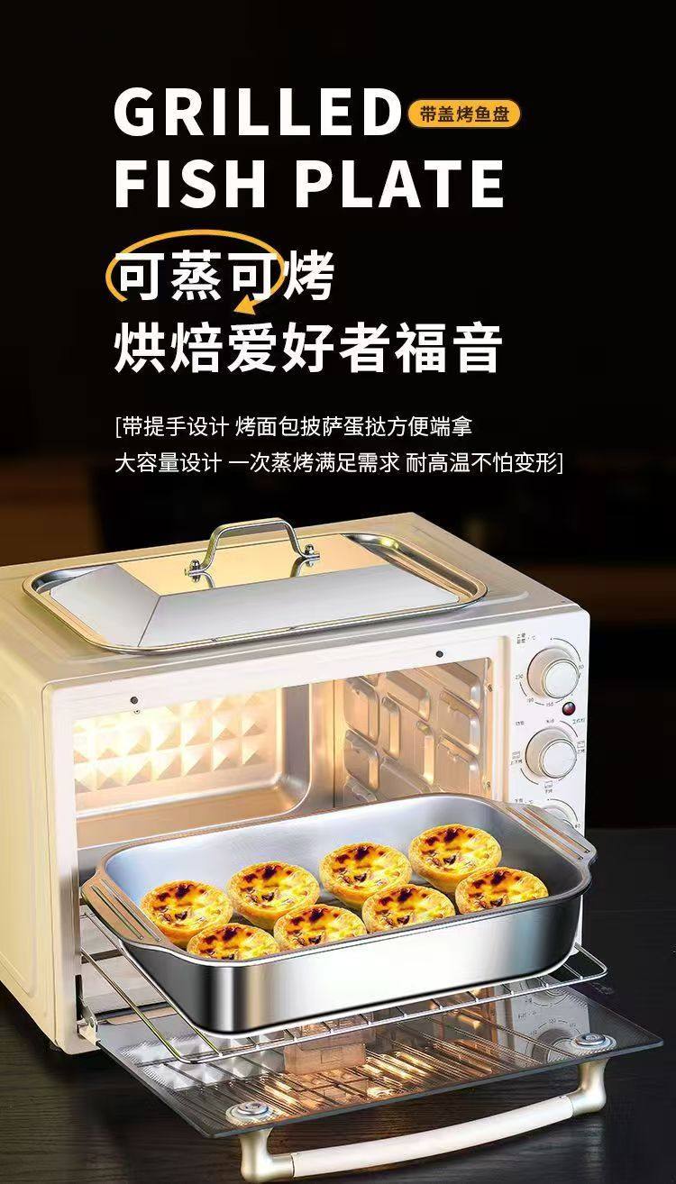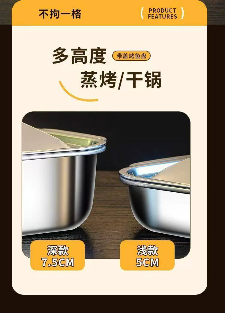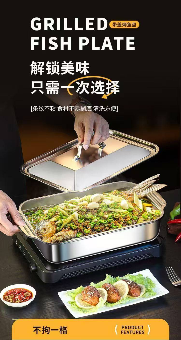 Stainless Steel Baked Fish Plate with Lid Rectangular Household Korean-style Square Plate Cake Plate Deepened Binaural Fish Plate Crayfish Plate