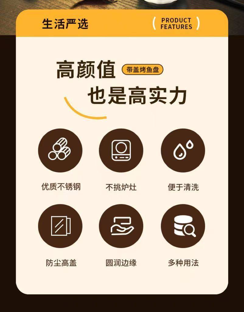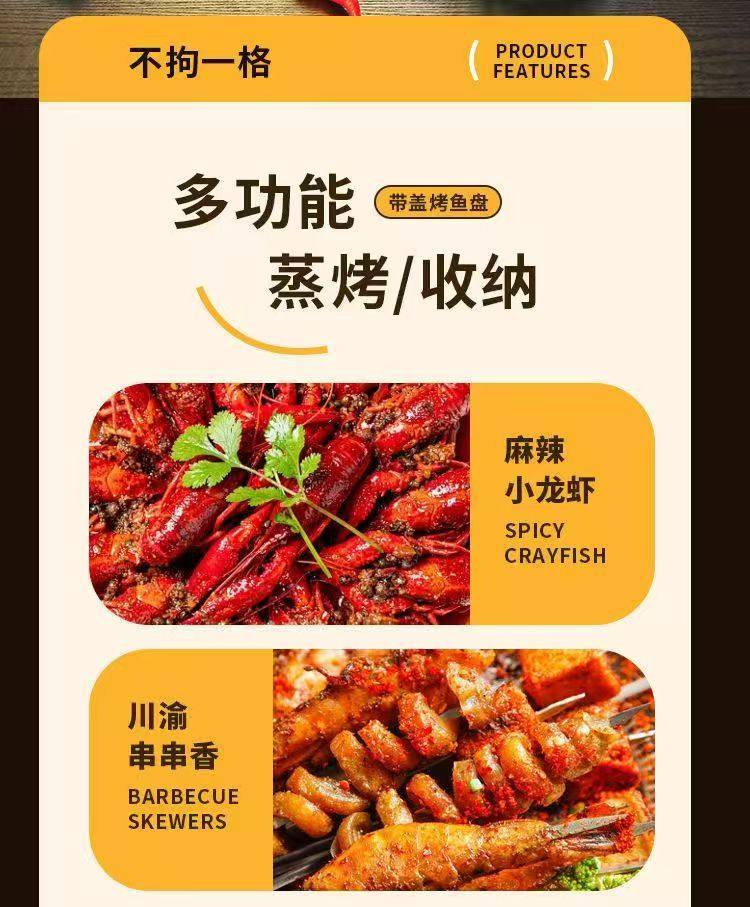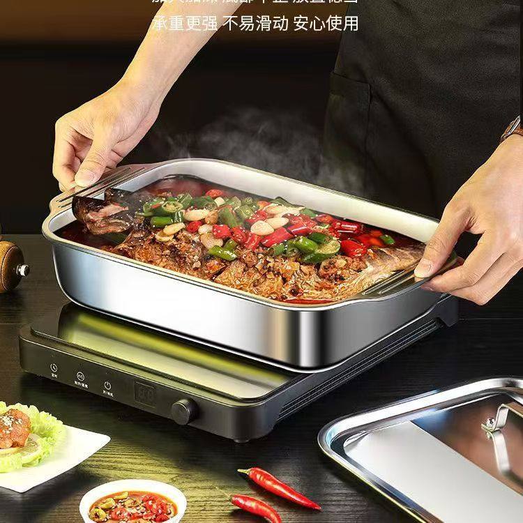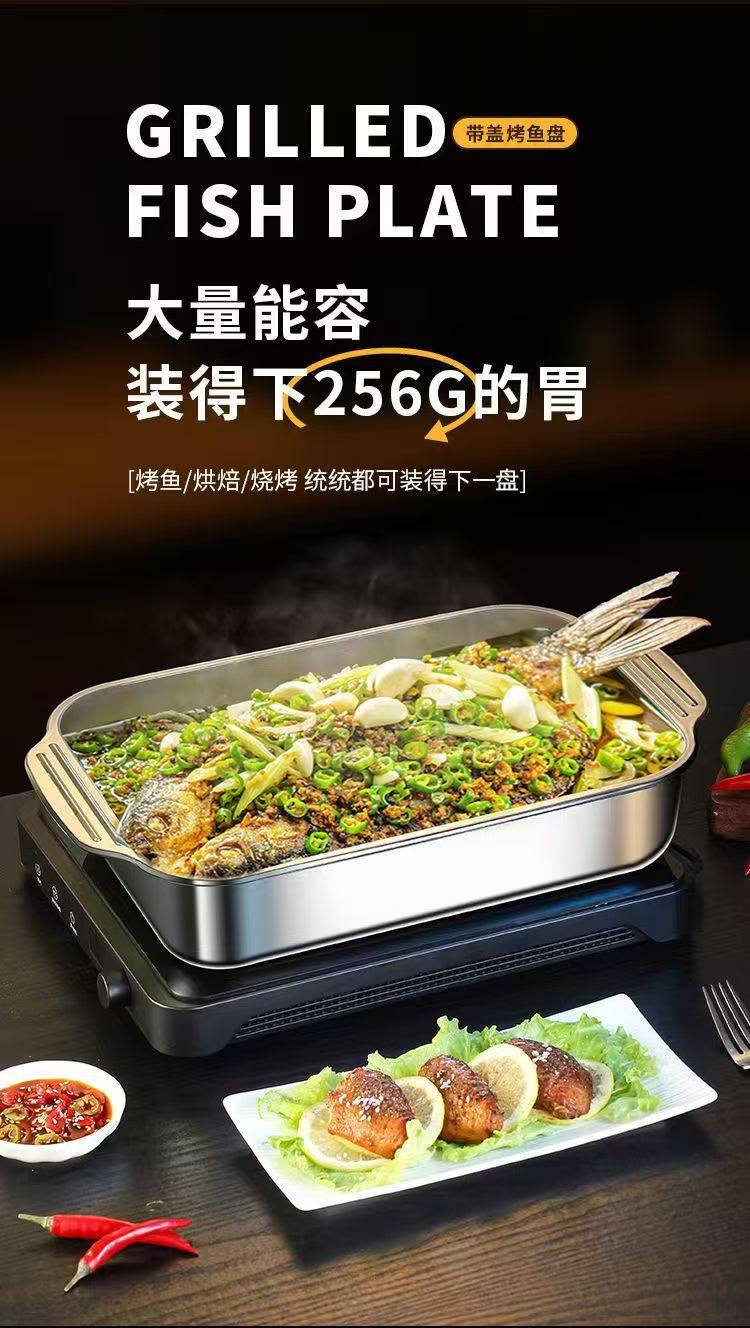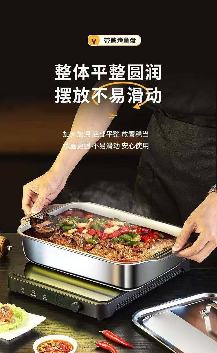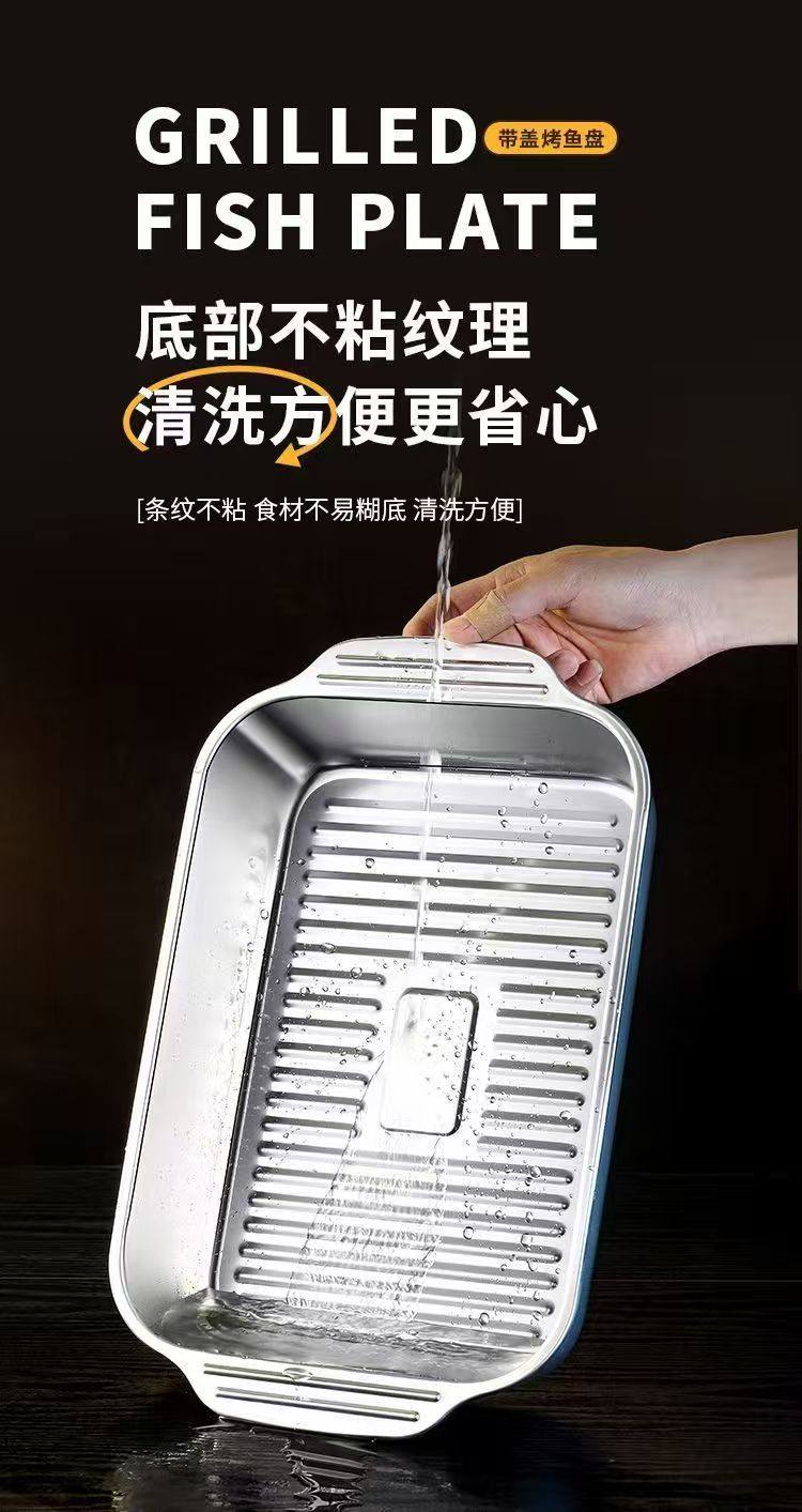 Stainless Steel Baked Fish Plate with Lid Rectangular Household Korean-style Square Plate Cake Plate Deepened Binaural Fish Plate Crayfish Plate
