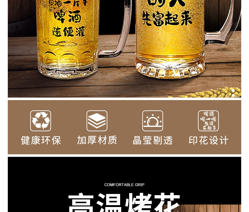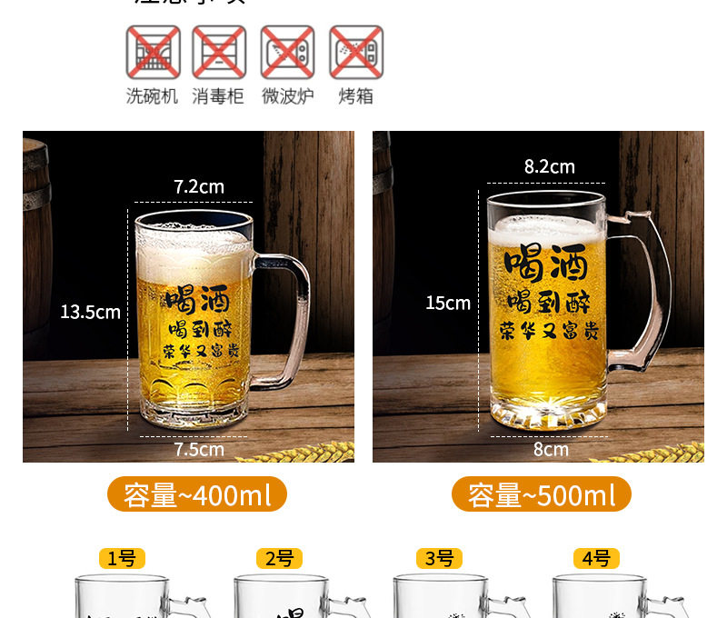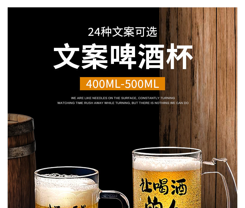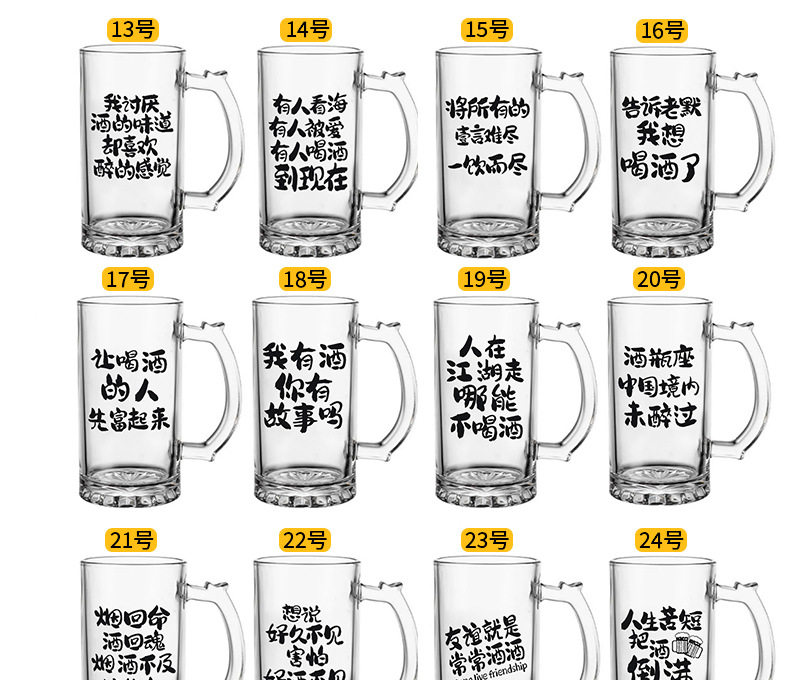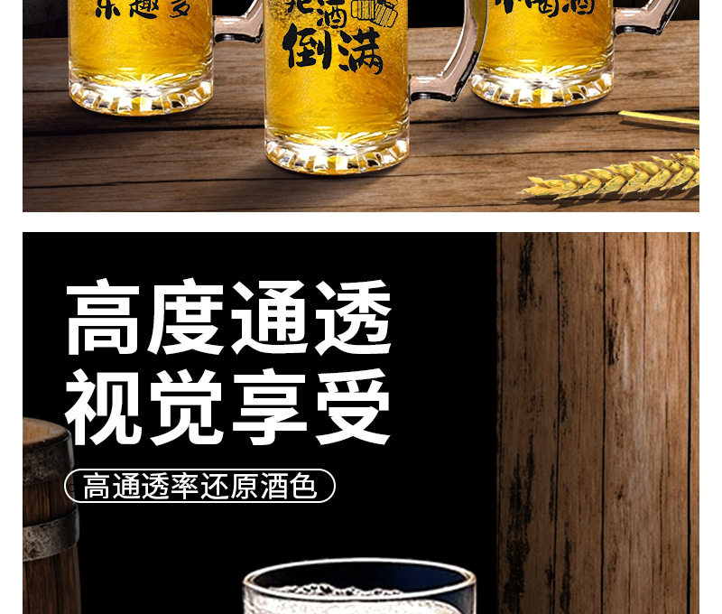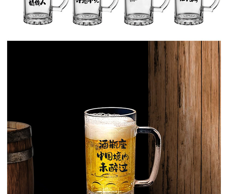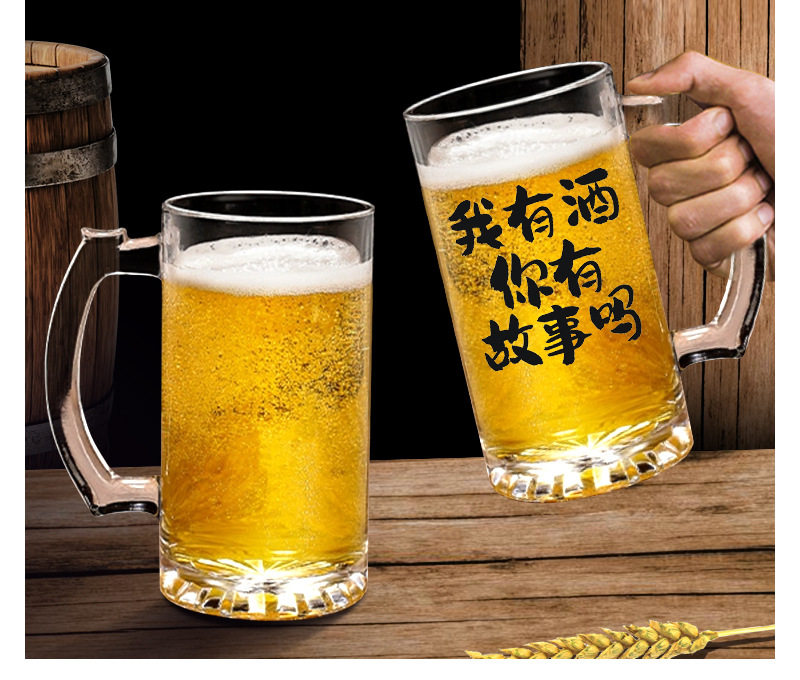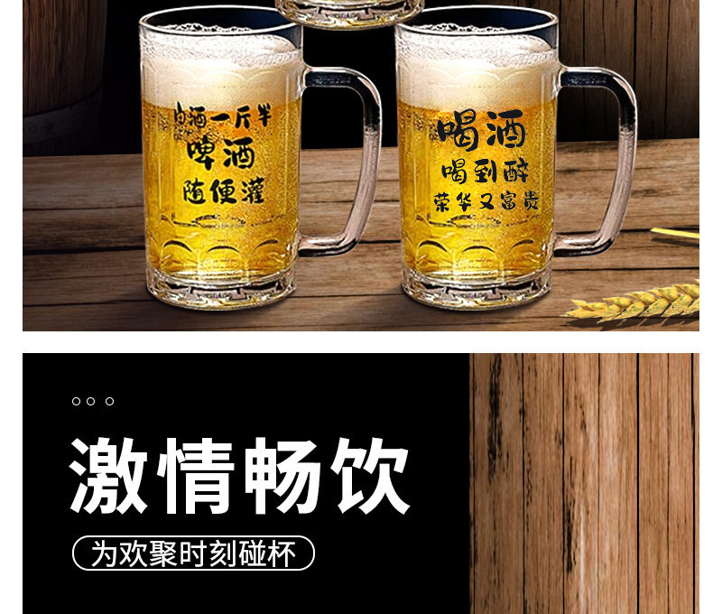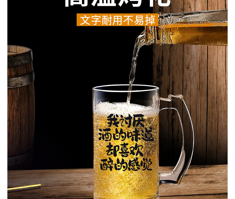 Commercial Large-Capacity 500ml Glass Beer Mug Barbecue Stall Restaurant Craft Beer Mug Creative Popular Copywriting Mug