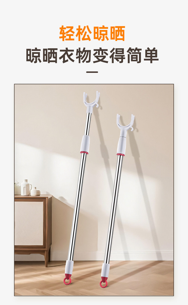 Stainless Steel Clothes Drying Rod, Balcony Clothes Rack, Household Extended Clothes Drying Rod, Floor-Standing Telescopic Rod for Balcony Clothes Drying