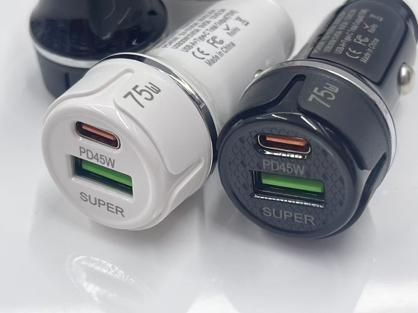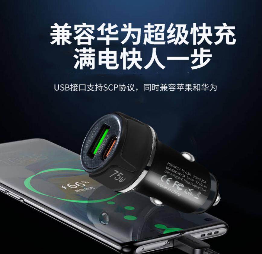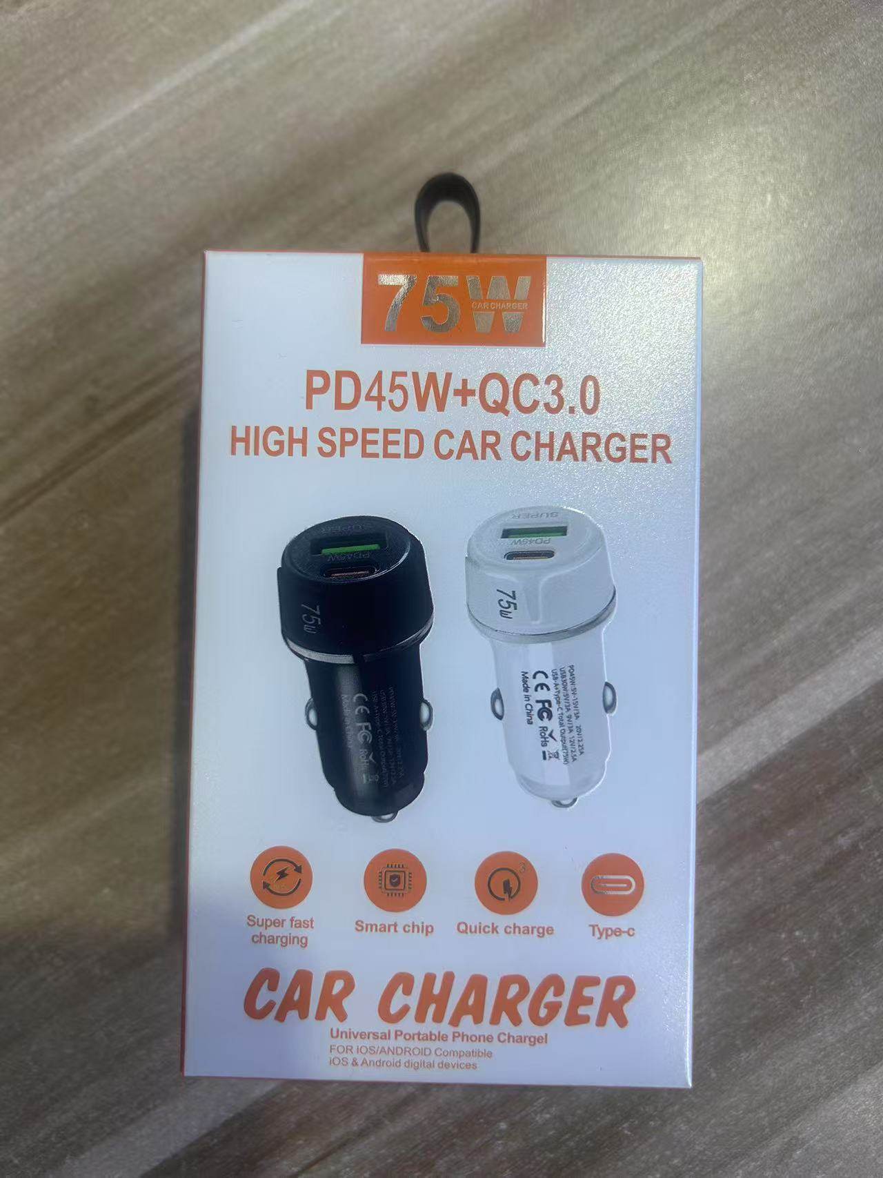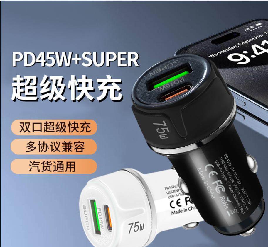 New car charger super fast charger one drag two 75W cigarette lighter dual plug fast charger car charger PD45W
