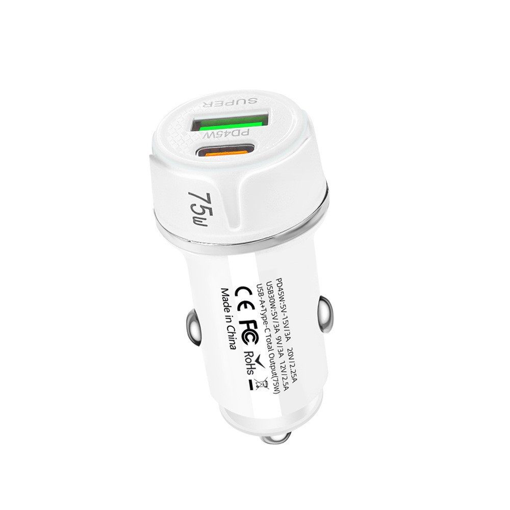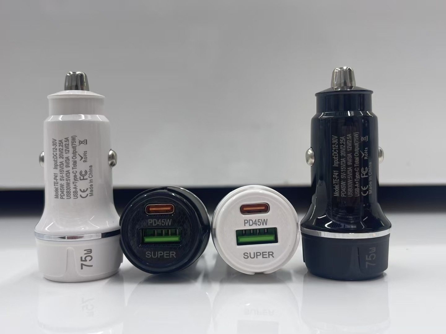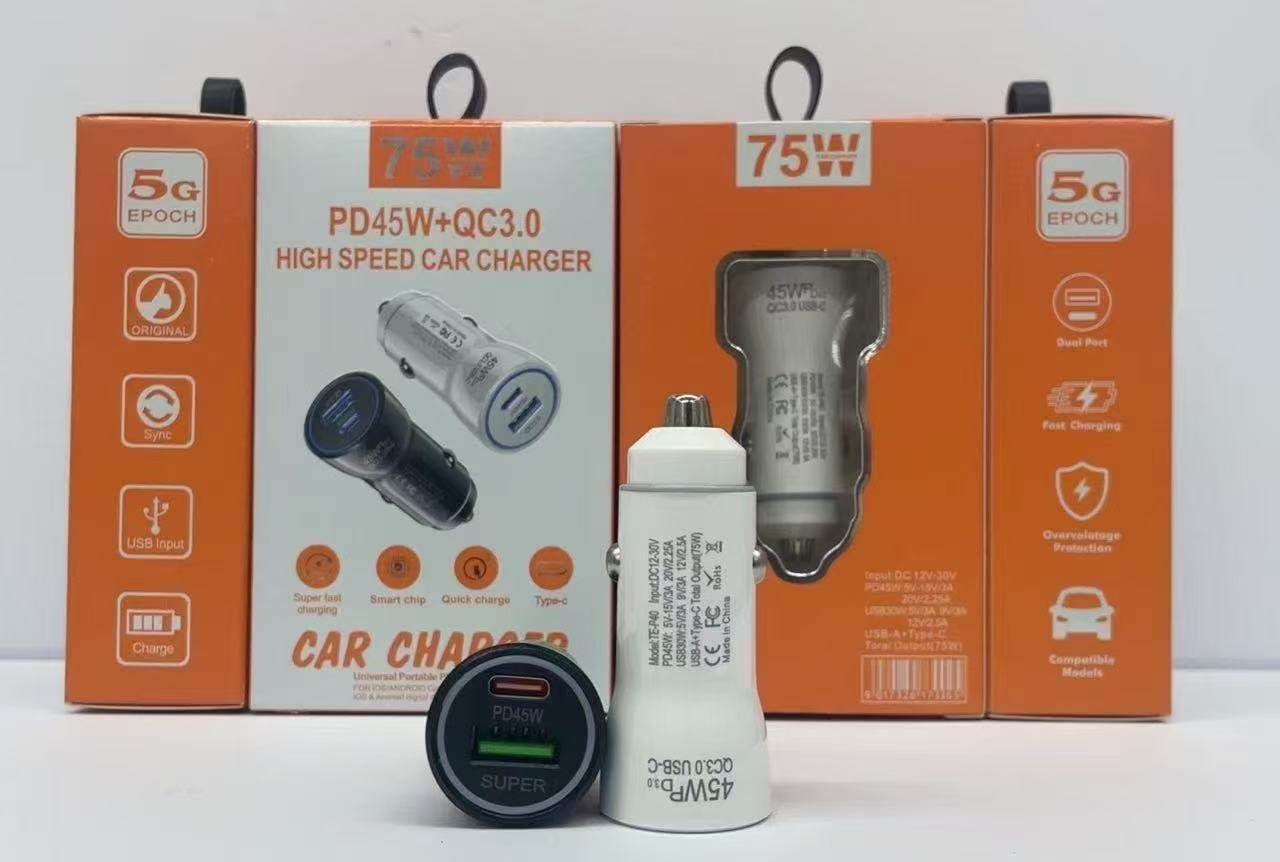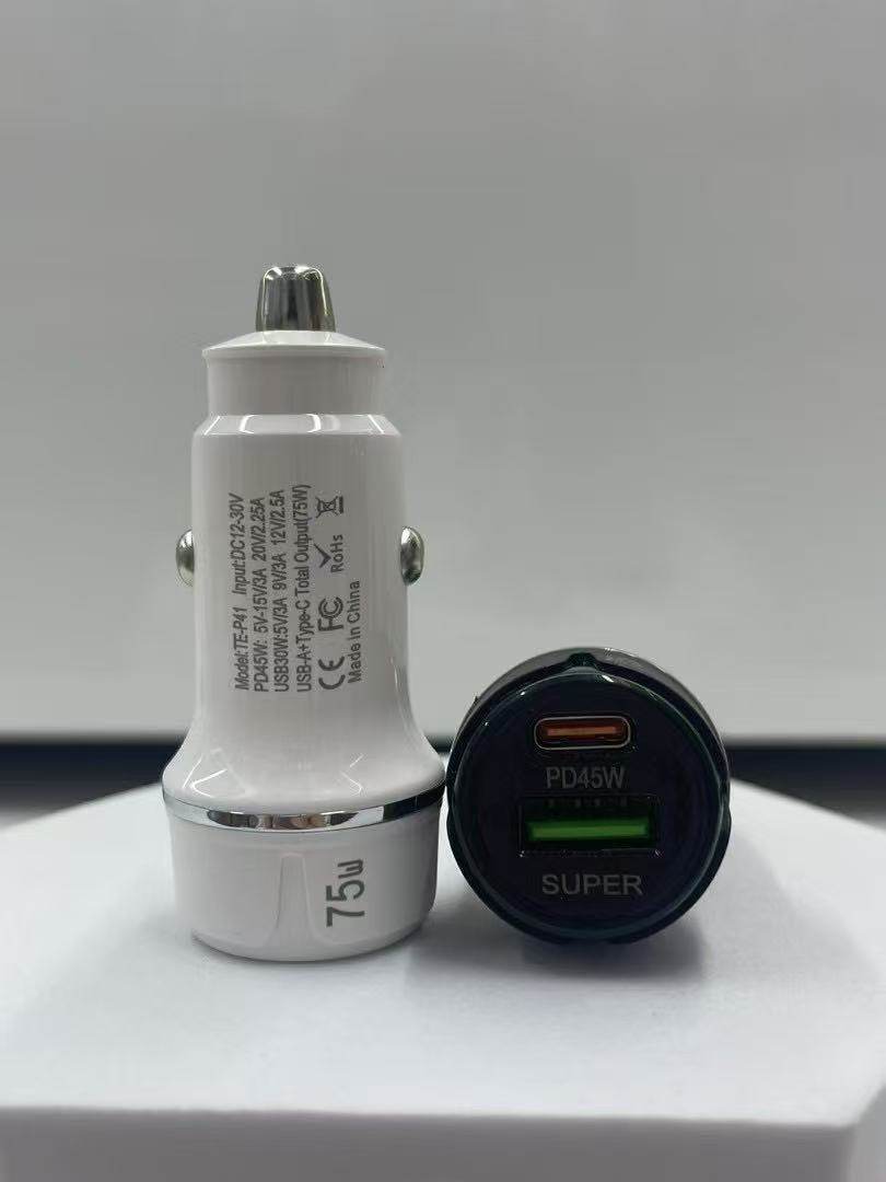 New car charger super fast charger one drag two 75W cigarette lighter dual plug fast charger car charger PD45W