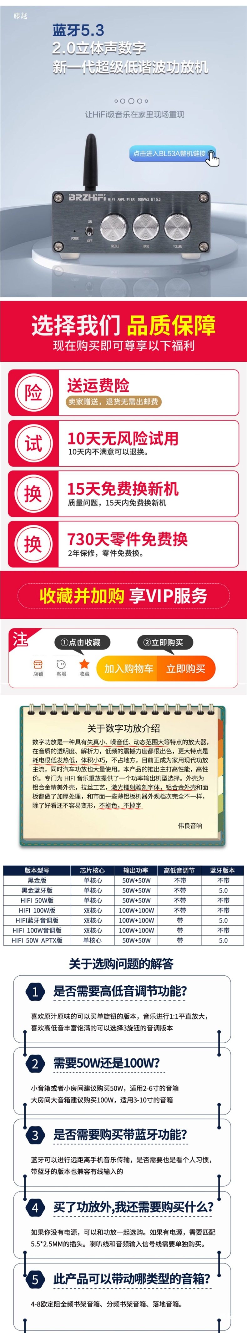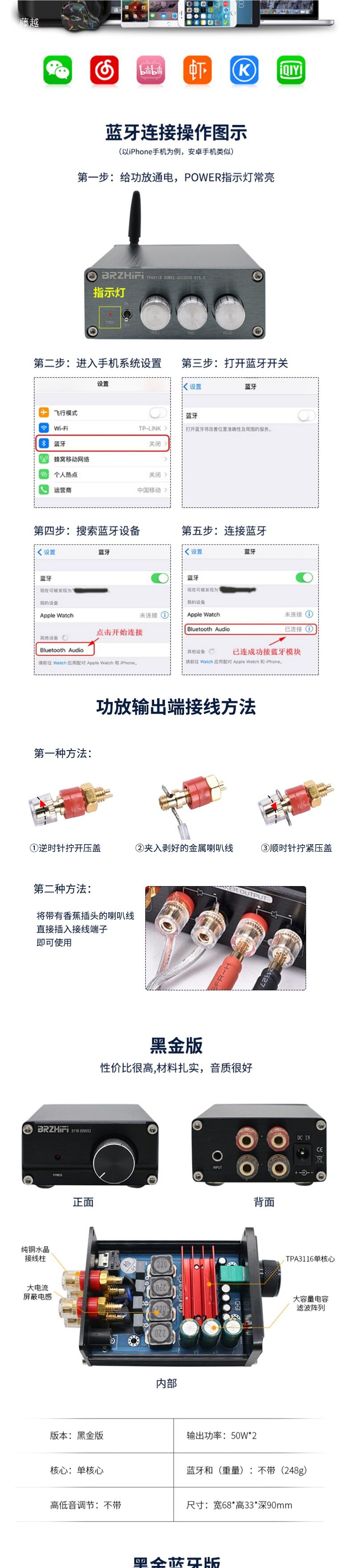 | Color | Hi-fi 50wx2 version (without power supply),Hi-fi 100wx2 version (without power supply),Black gold material standard version 50wx2 (excluding power supply),Tone 100wx2 version (power supply not included),Tone 100wx2 version bluetooth 5.0 (power supply not included),Optional stock second-hand export-type power supply 19v 6a,Brand new 24v6a power adapter,19v3.4a 65w power supply,Black gold version bluetooth version (power supply not included),Bl53a bluetooth 5.3 tone 100wx2 version (excluding power supply) |