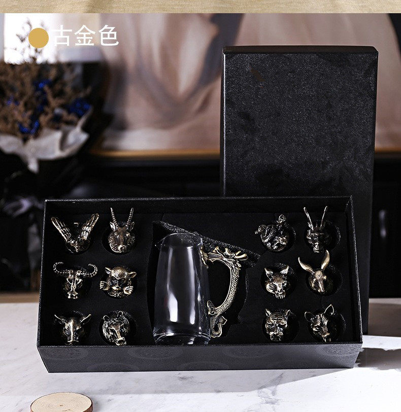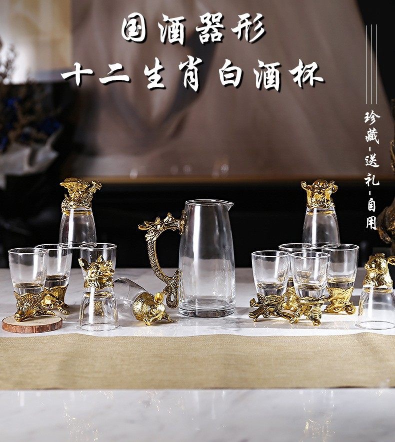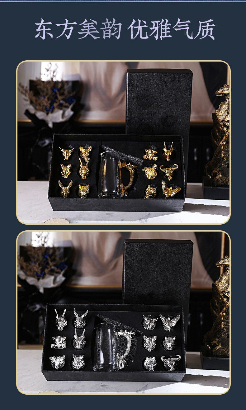 Factory Direct Sales Wholesale Twelve Zodiac High-End Chinese Liquor Glasses Glass Wine Cup Decanter Set Gift Box