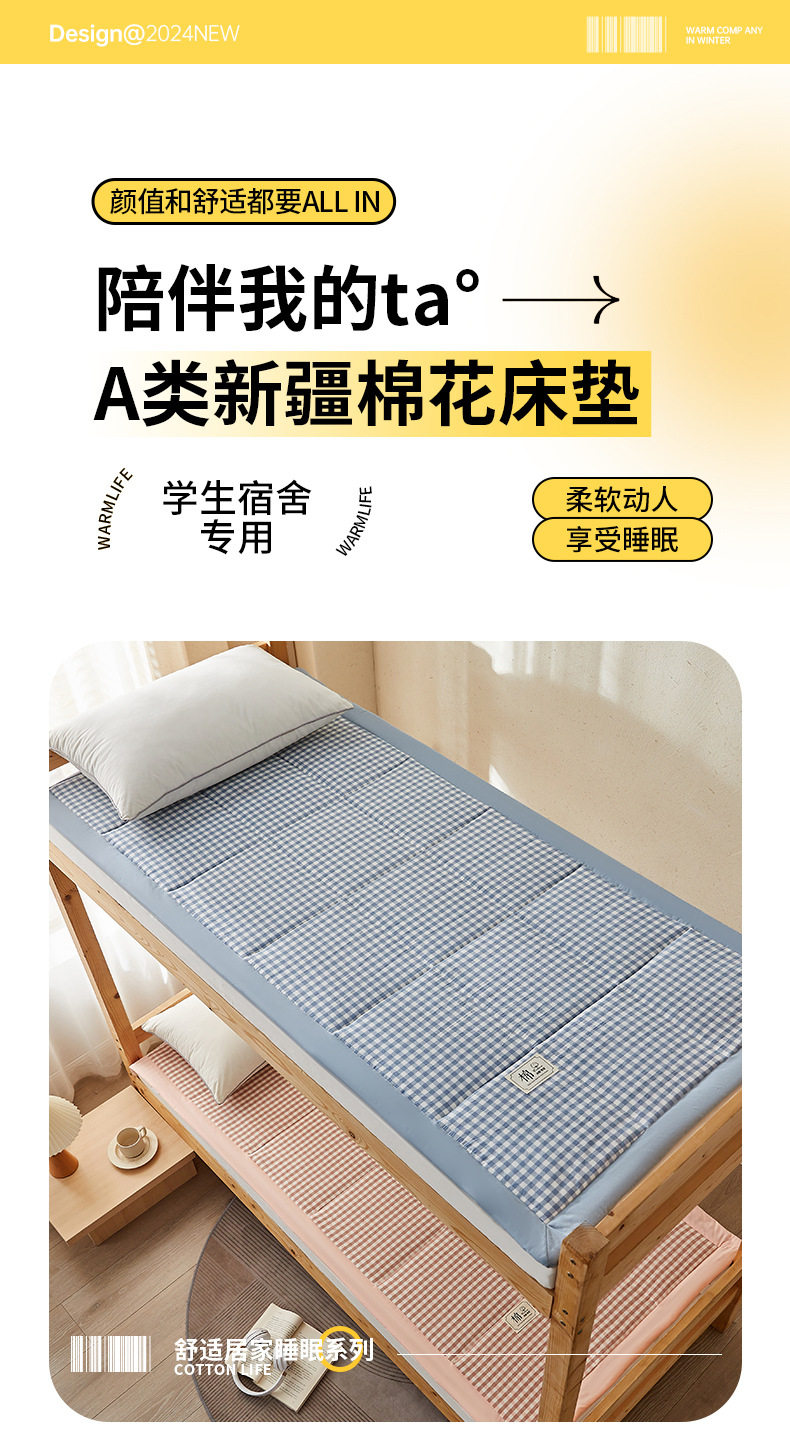 Wholesale Class a Xinjiang Cotton Student Dormitory Mattress Mattress Kidsren's Bunk Bed Thickeneded Tatami Soft Mattress