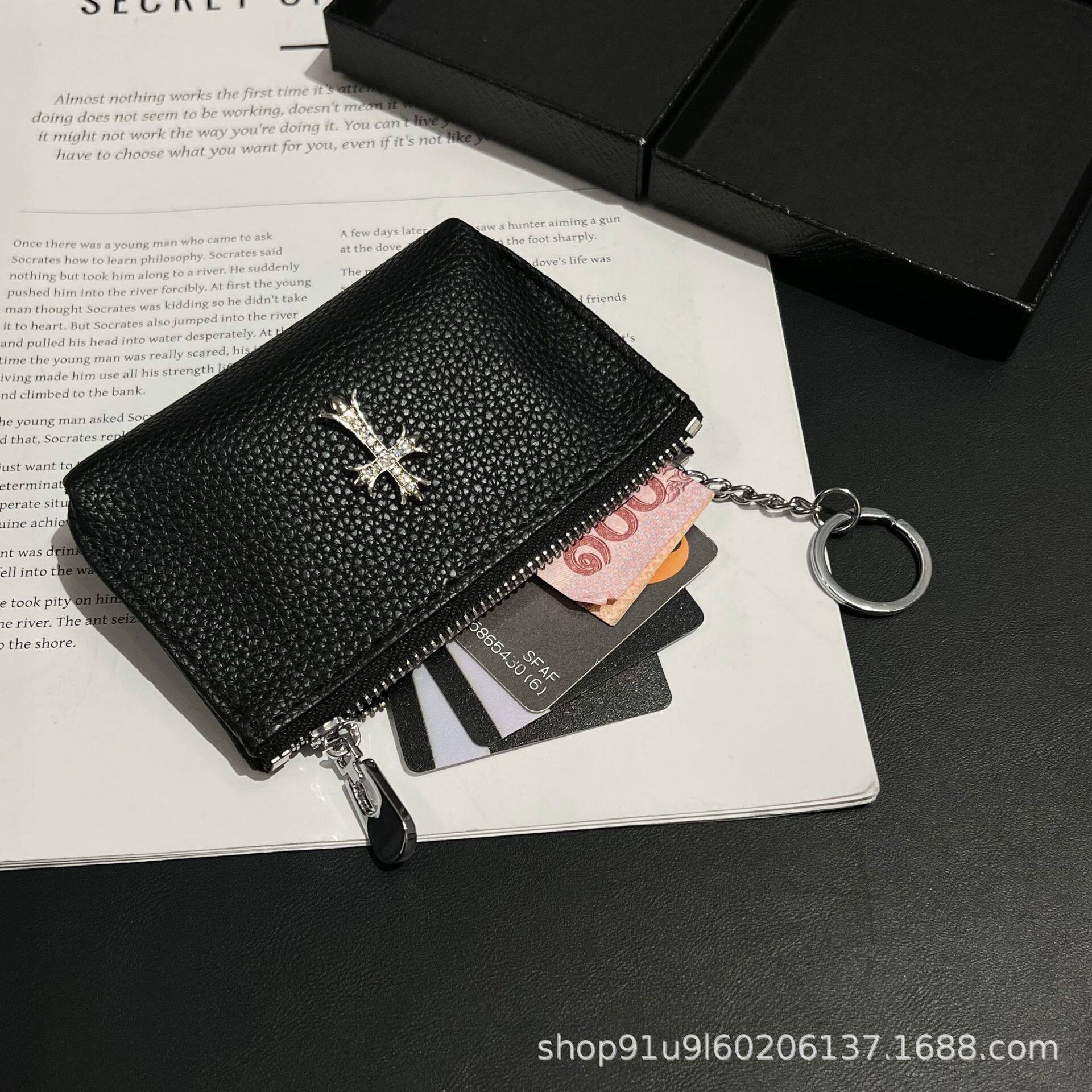 Crow's Same Leather Cross Sword Zipper Card Holder Card Holder Coin Purse Small Cosmetics Bag Niche High-End Sense