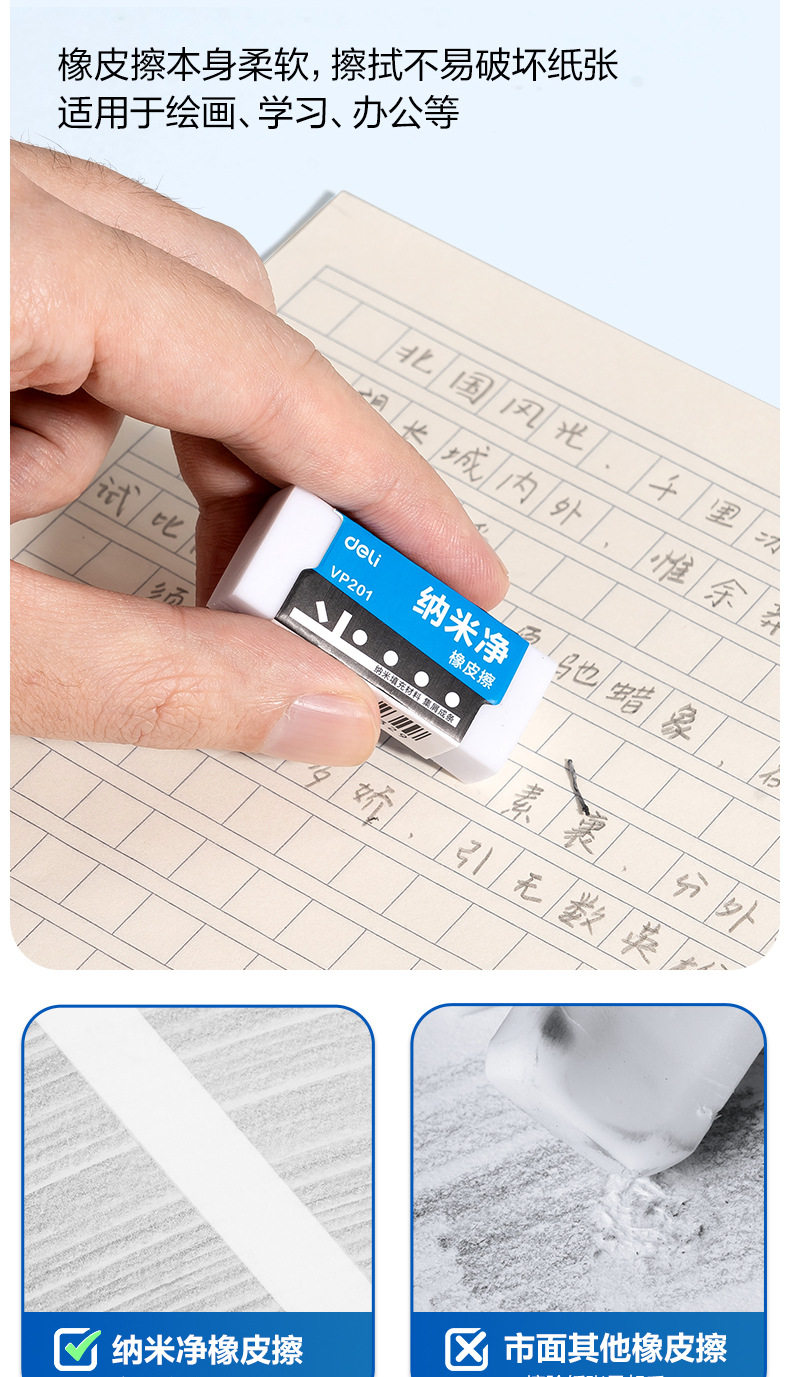 Deli Vp201 Vp202 Vp203 Nano Clean Eraser Less Crumb Children's Pencil No Crumb Super Clean