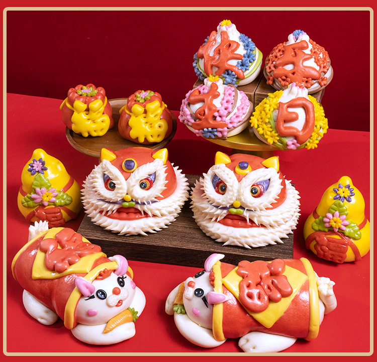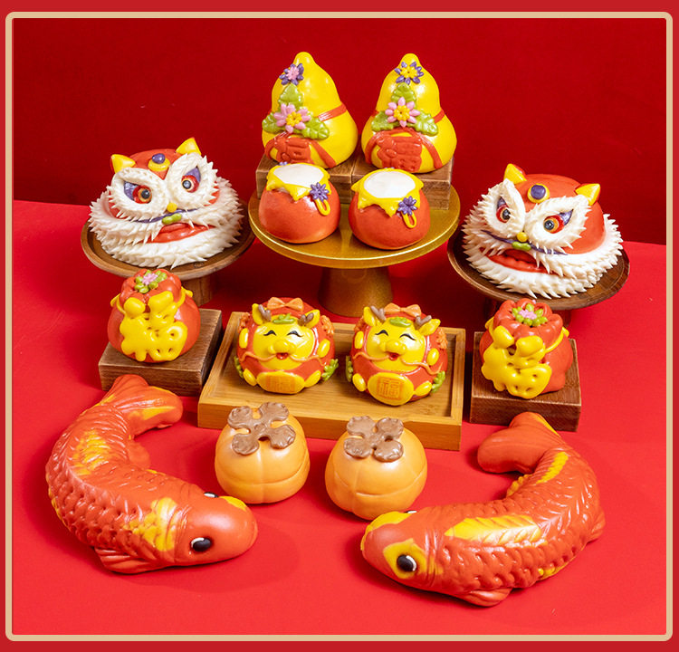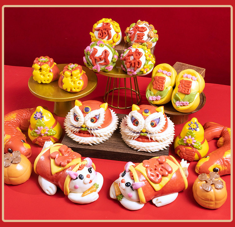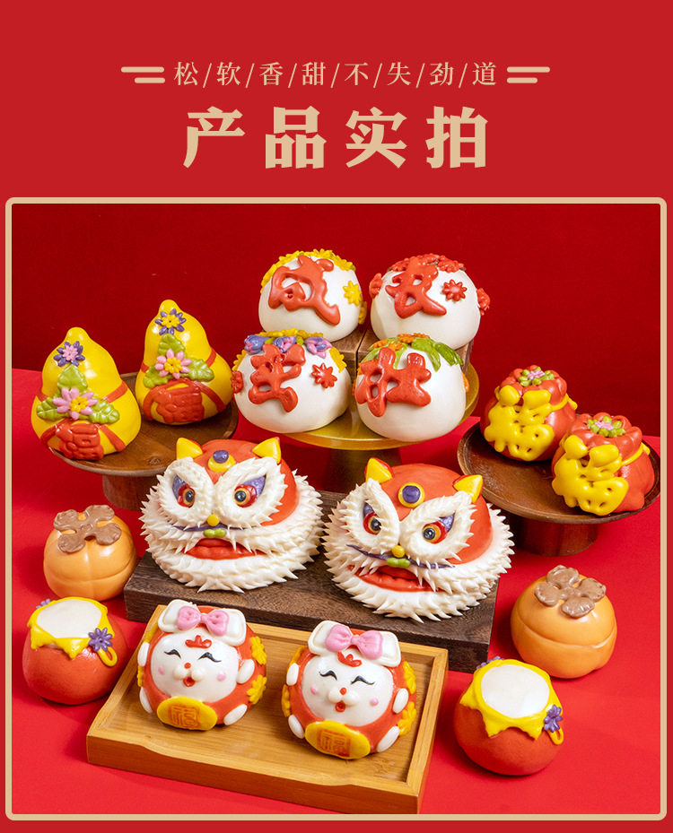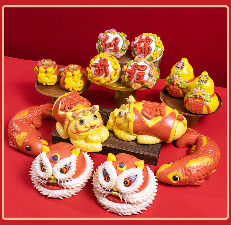 Traditional Chinese Birthday Cake, Jiaodong Flower Cake, Lion Dance Props, Full Moon, Hundred Days, Rabbit and Dragon Pastry