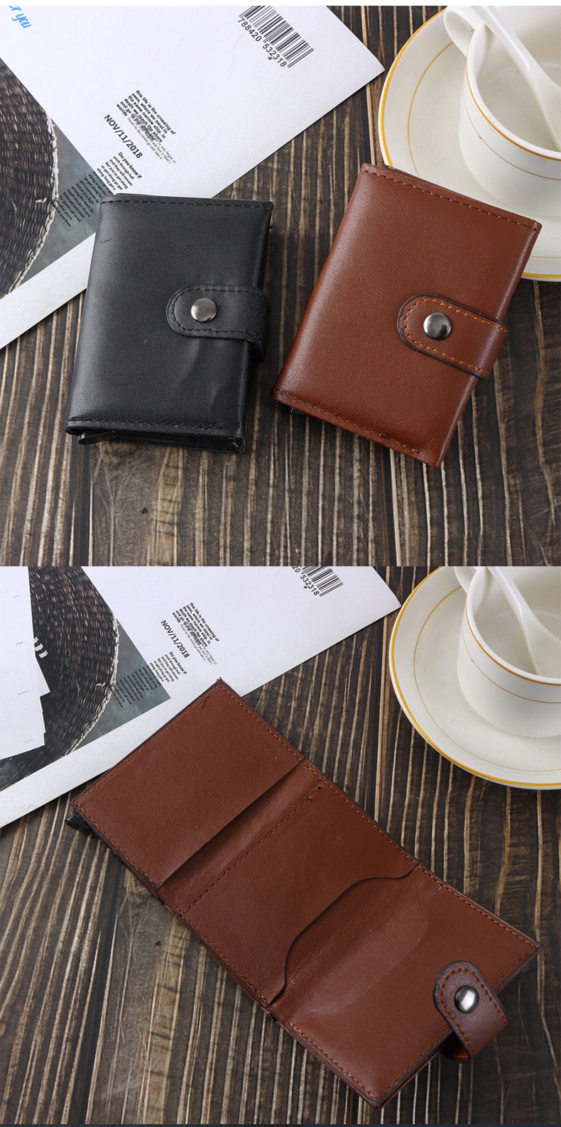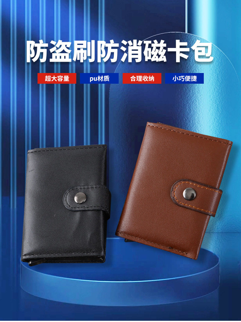 Card Holder Rfid Anti-Theft Credit Card Case Aluminum Alloy Card Box Coin Purse Card Cover with Buckle Bag Leather Card Holder