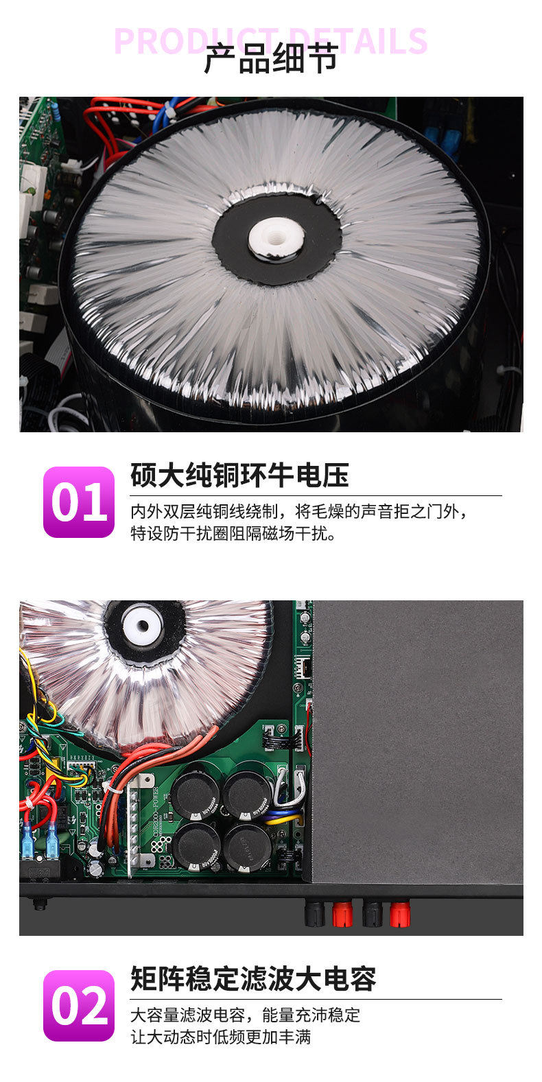 Digital power amplifier professional pure post-stage two-channel high-power performance amplifier home bar conference KTV sound