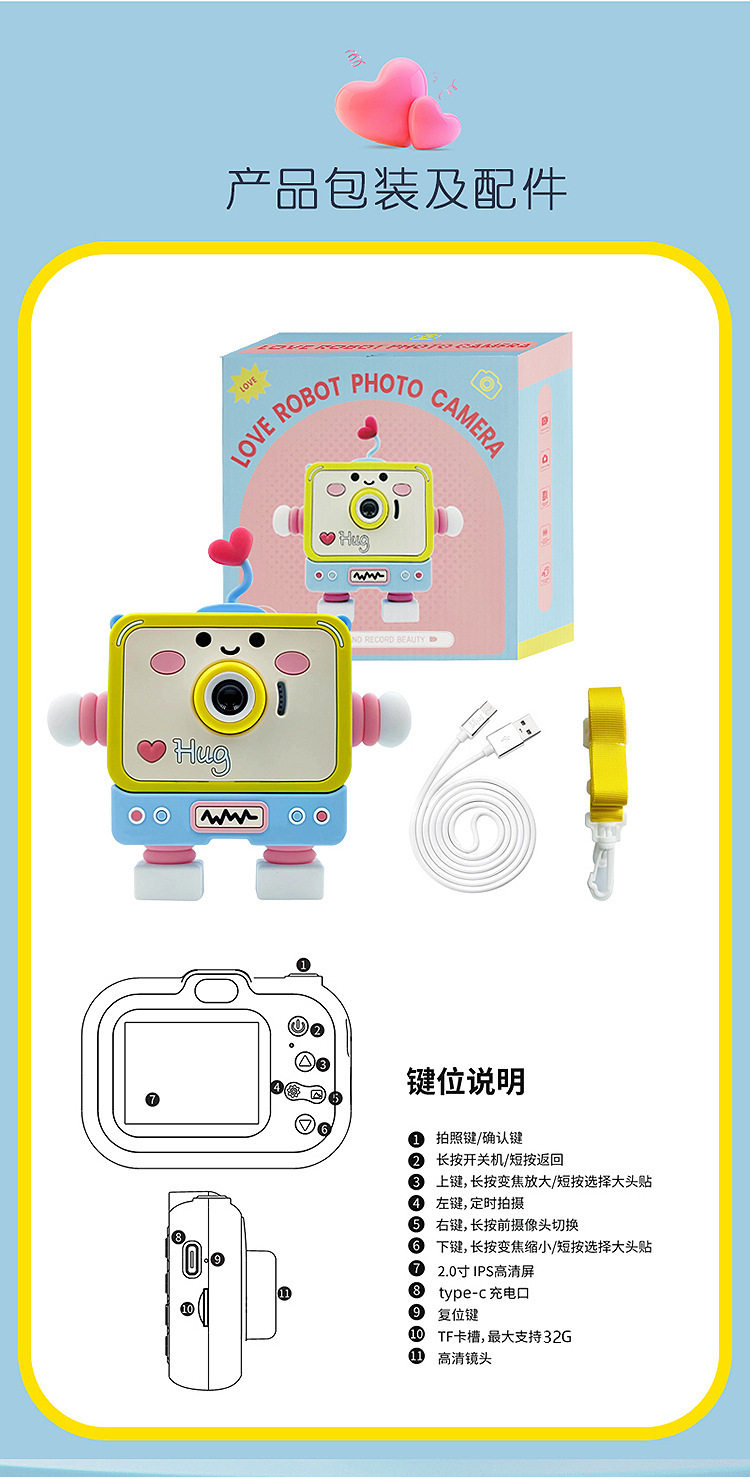 Love robot high-definition digital camera double lens self-timer video camera children's enlightenment camera cross-border