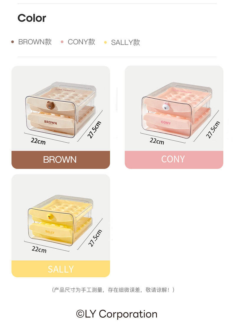| Specification | [brown bear] 40-compartment drawer type [long-lasting freshness/no egg picking type],[coni rabbit] 40-compartment drawer type [long-lasting freshness/no egg picking],[brown bear*2] 80-grid drawer type [long-lasting freshness/no egg picking type],[coni rabbit*2] 80-grid drawer type [long-lasting freshness/no egg picking type],[brown + coni] 80-grid drawer type [long-lasting freshness/no egg picking type] |