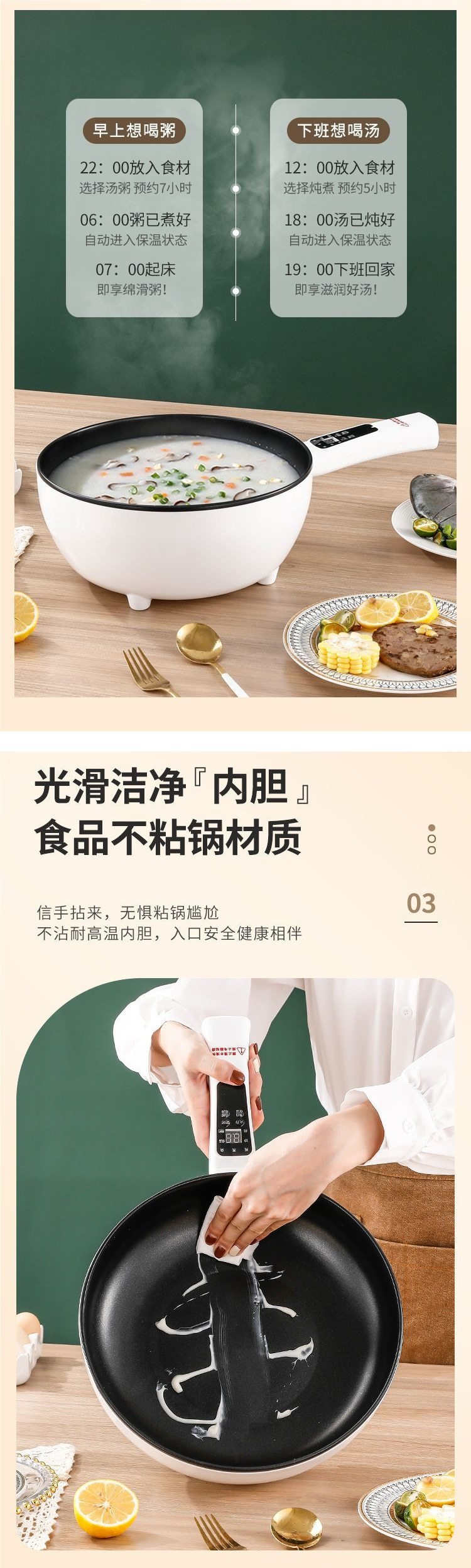| Product specifications | Multifunctional fast and slow dual-speed electric cooking pot to prevent dry burning |