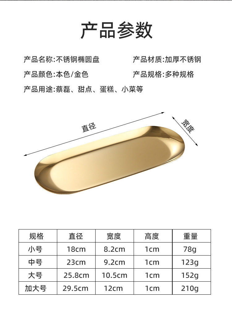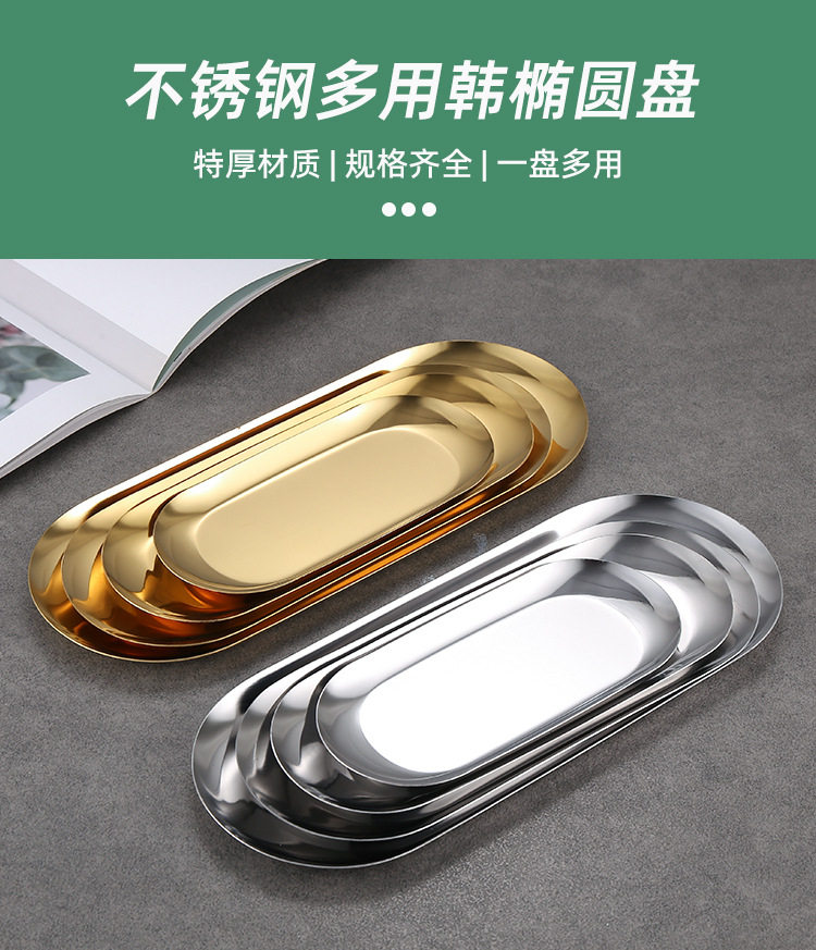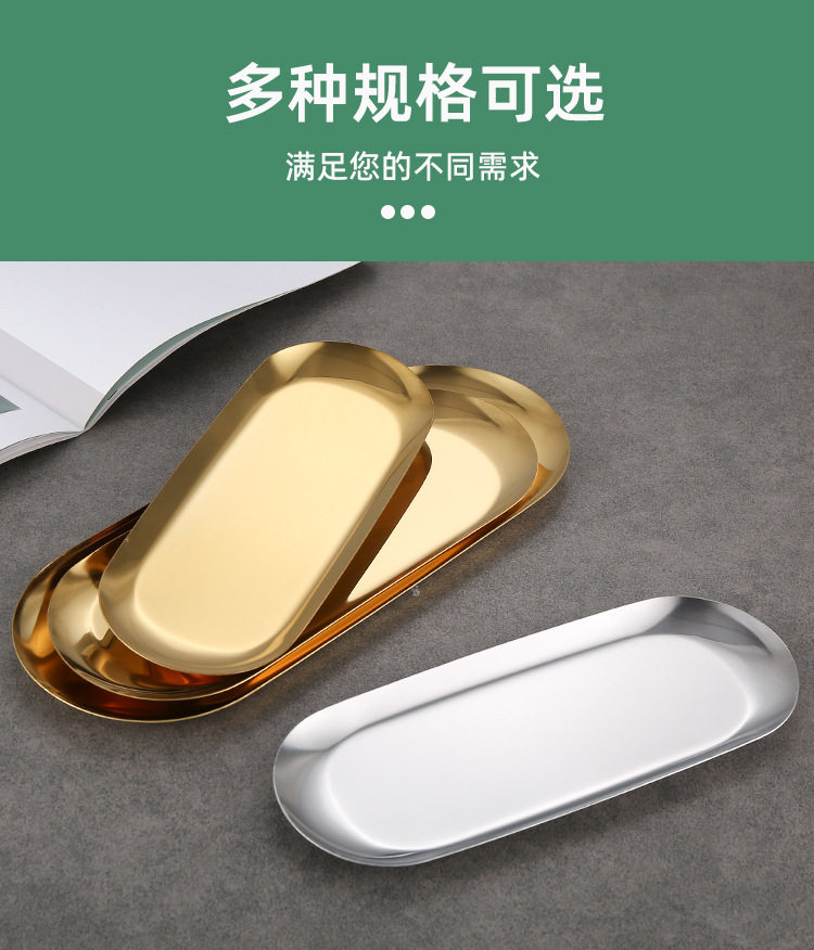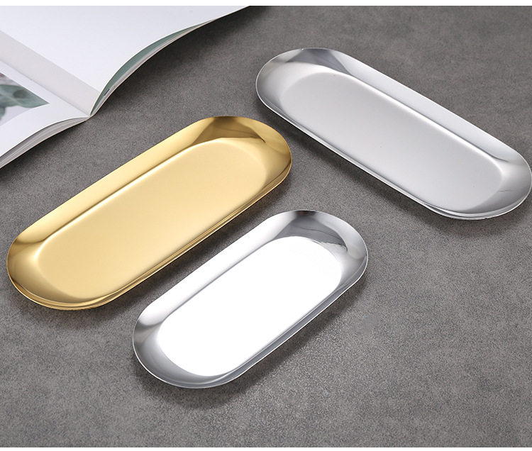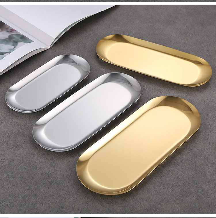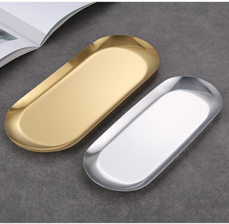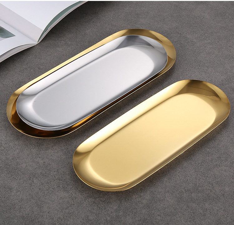 Stainless Steel Tray Towel Tray Oval Tray Restaurant Jewelry Storage Flat Bottom Gold Small Tray Vintage Tray Home Tableware