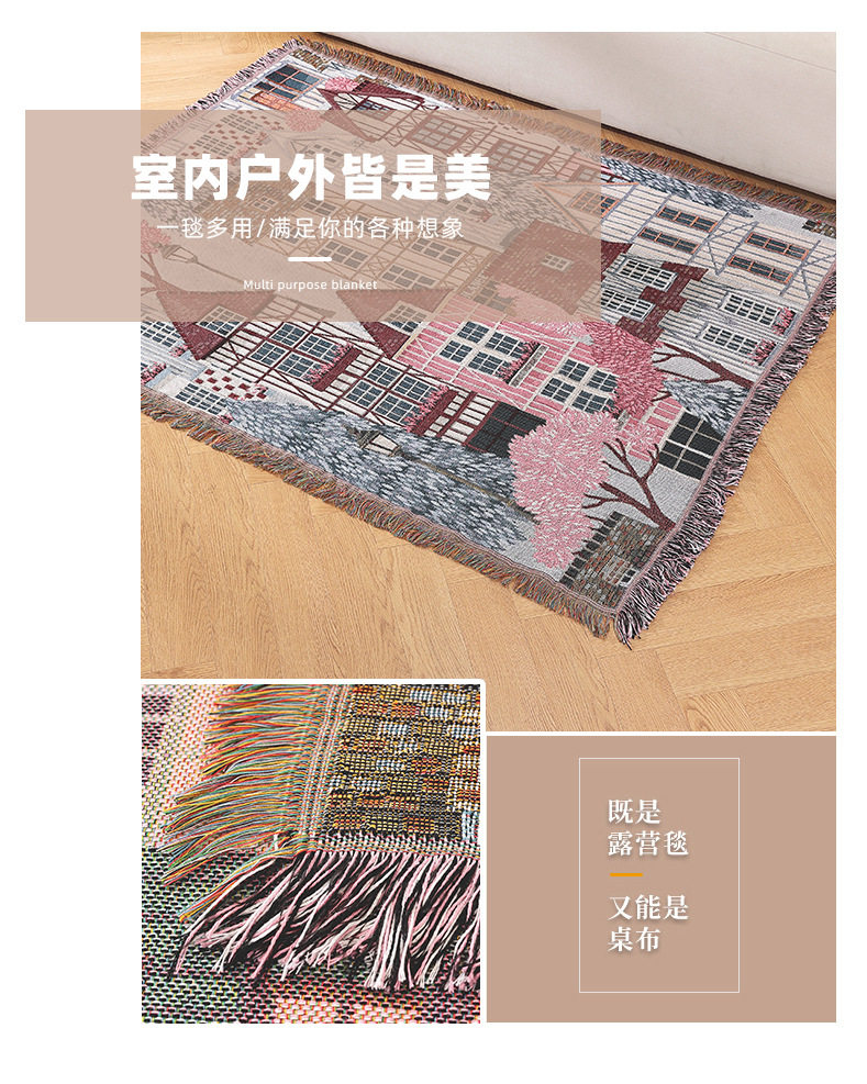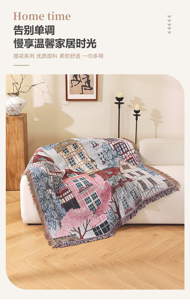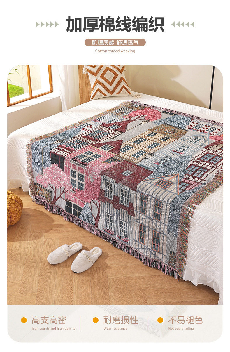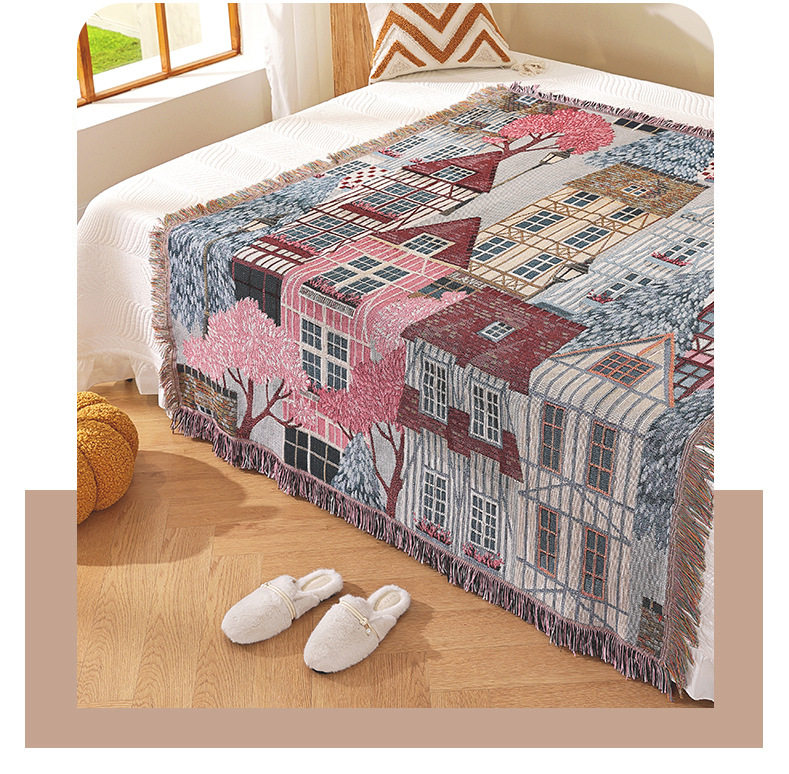 Customized Factory Ins Style Jacquard Thread Blanket Thickeneded Sofa Cover Blanket Oil Painting Tapestry Art Gift Fur Blanket Camping Style