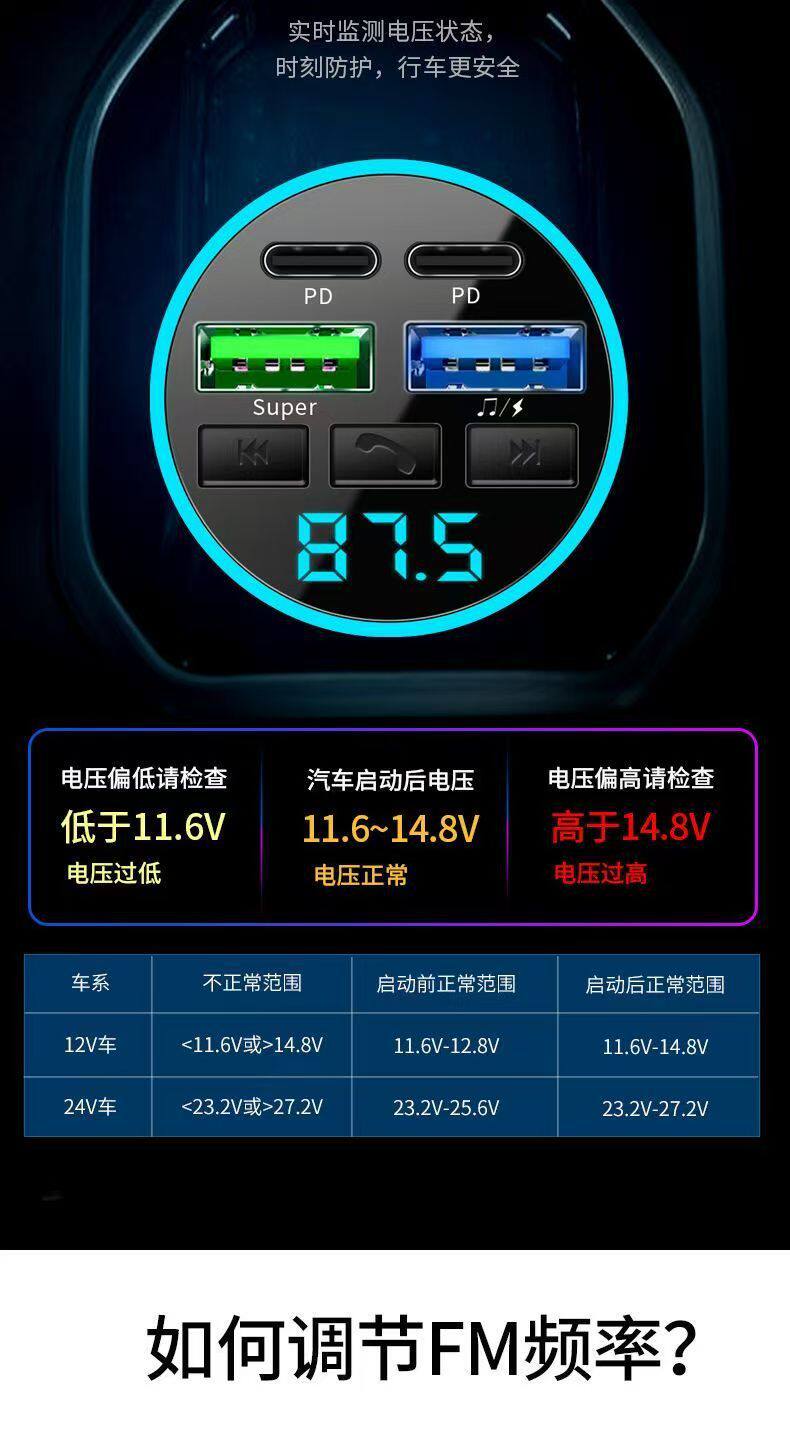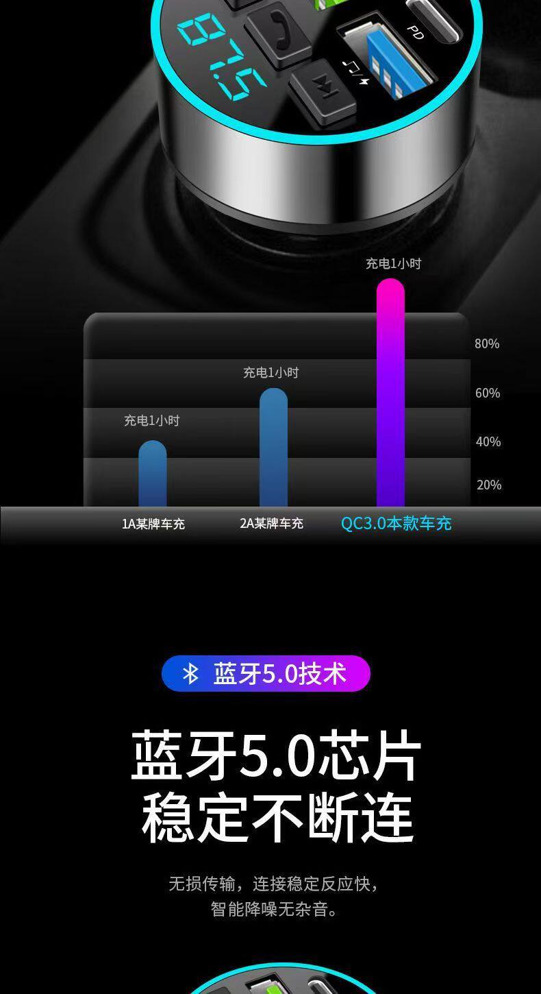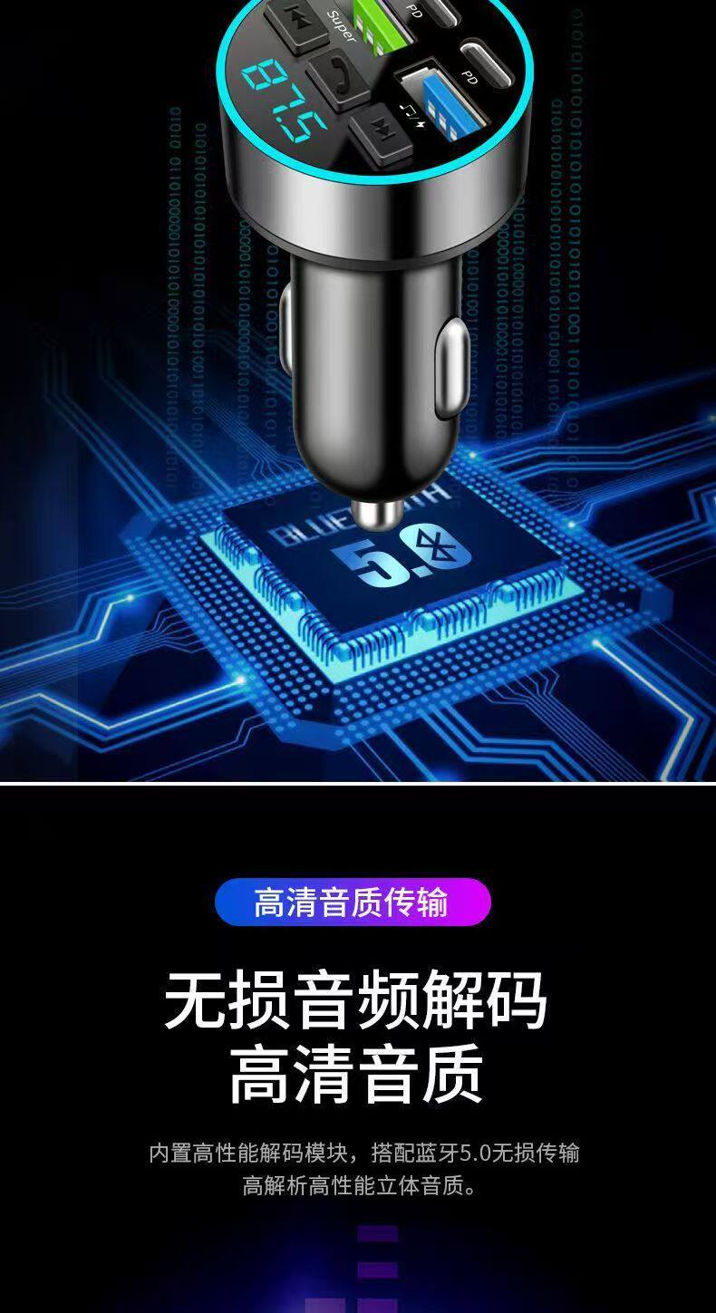 Car Bluetooth Receiver Lossless Sound Quality mp3 Player Conversion Multifunctional Car Charger Super Fast Charge