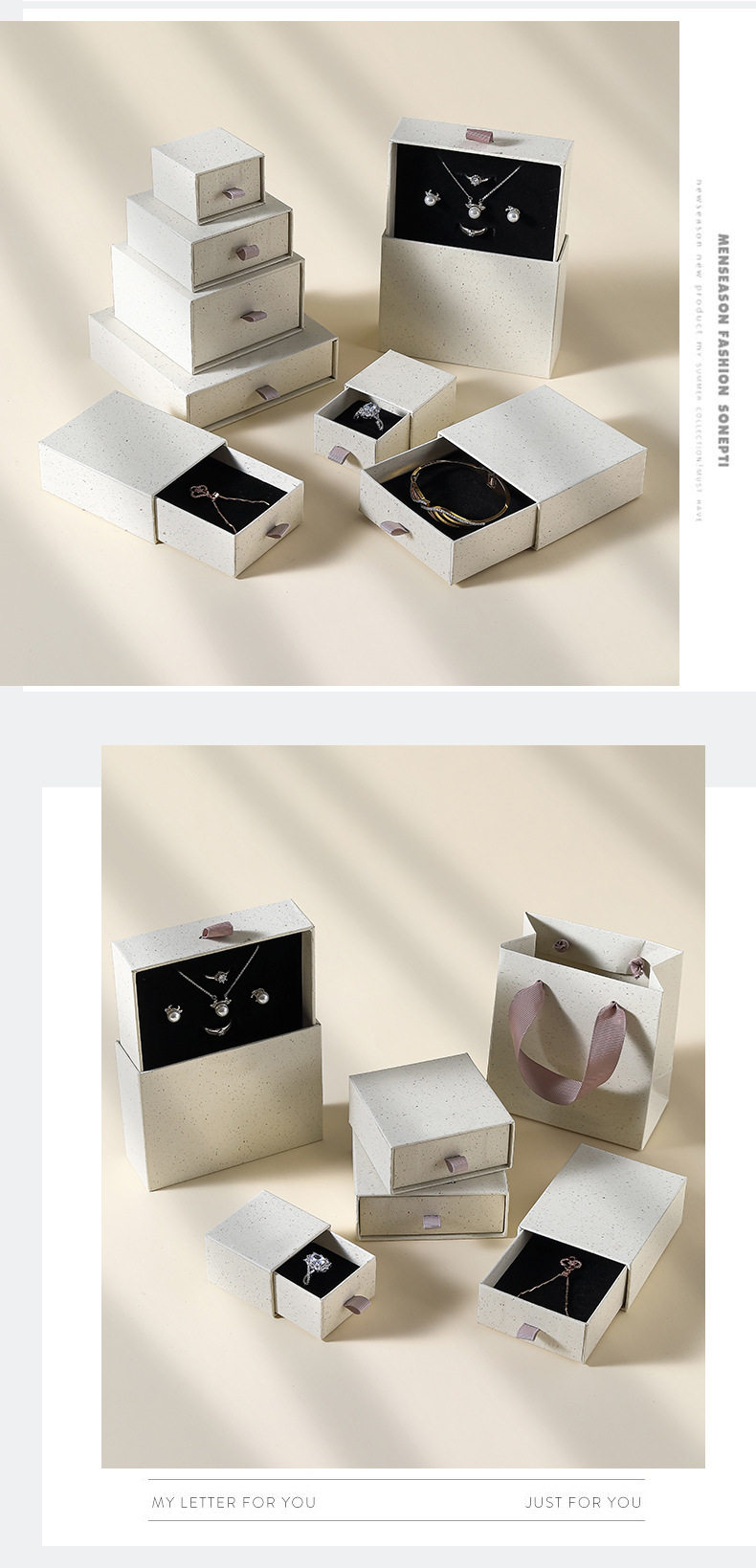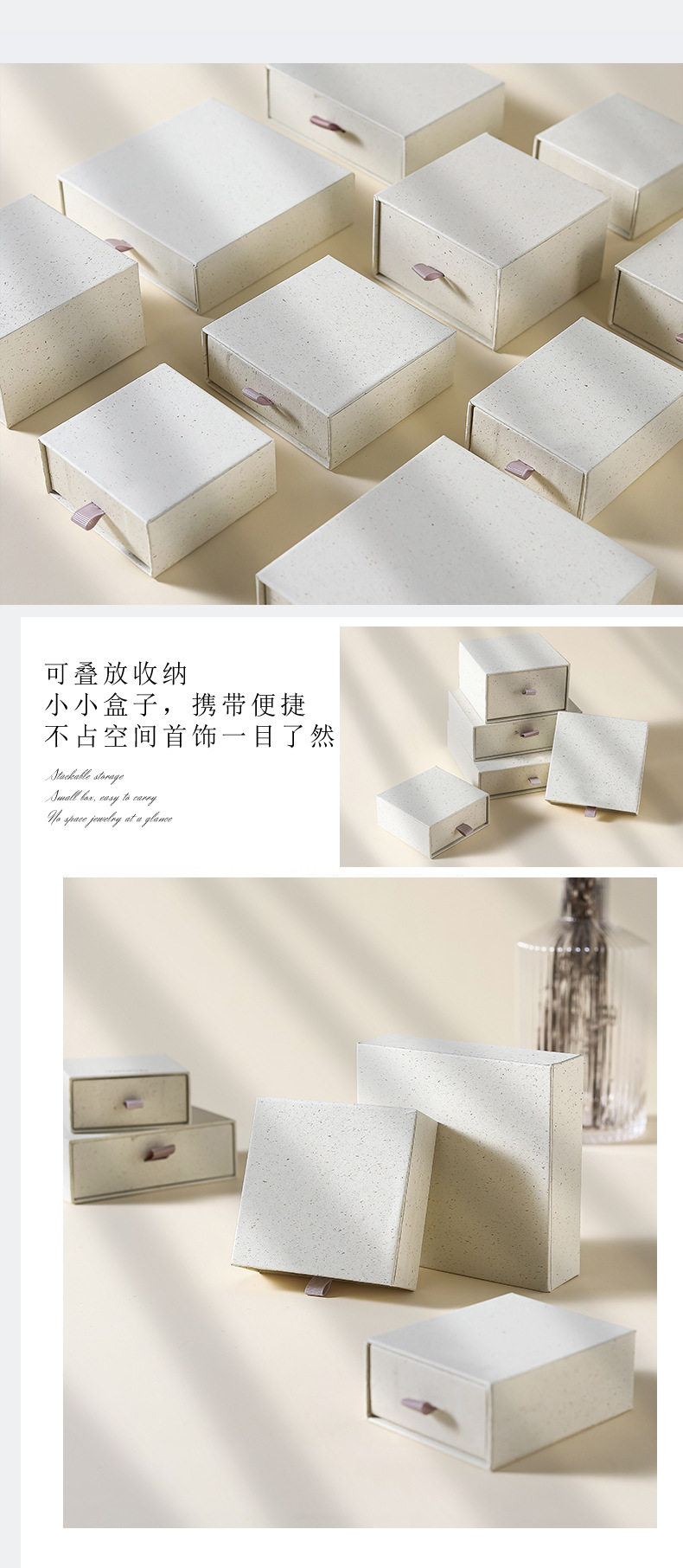 Recycled Paper Drawer Box Blank Version Neutral Storage Box Ring Earrings Pull-Out Box Jewelry Packaging Box Ready for Sale