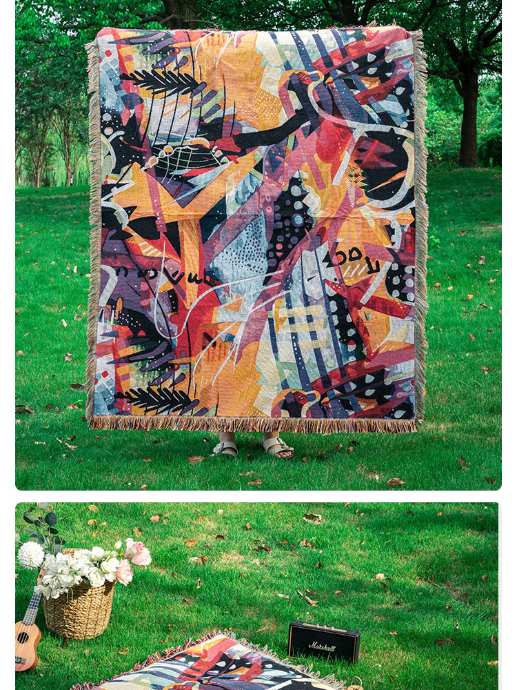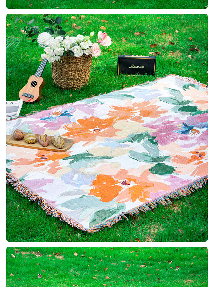 Cross-border line blanket picnic blanket flowers flower line blanket wholesale tapestry blanket jacquard woven blanket sofa towel