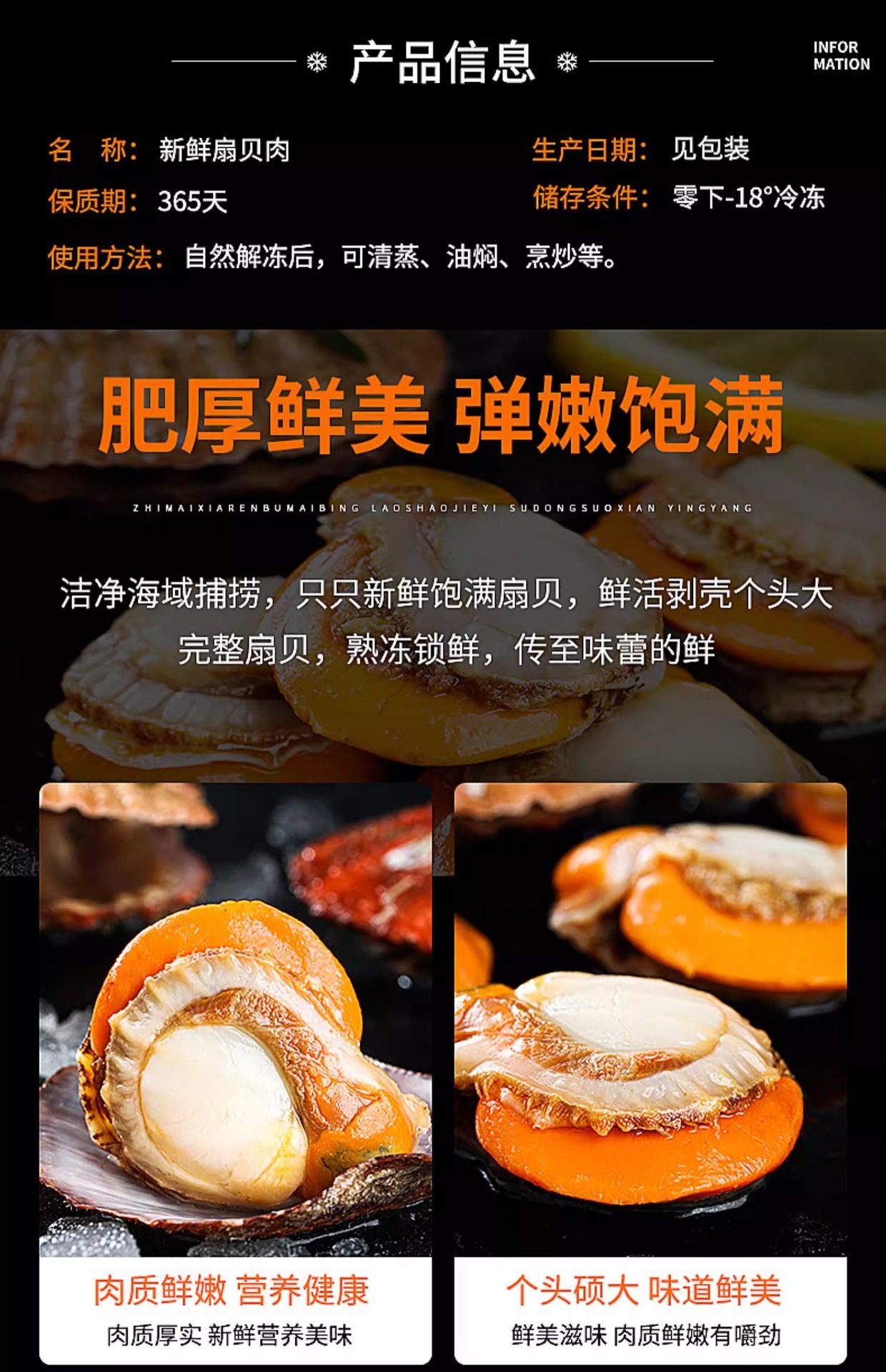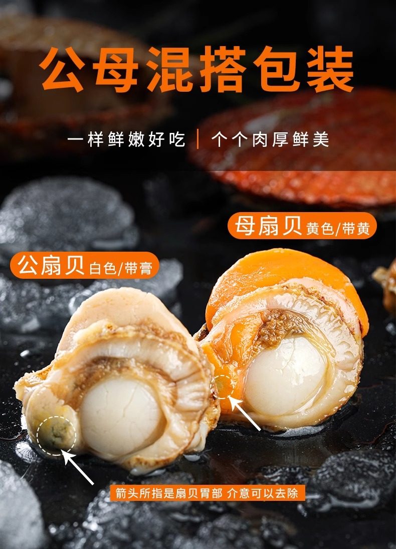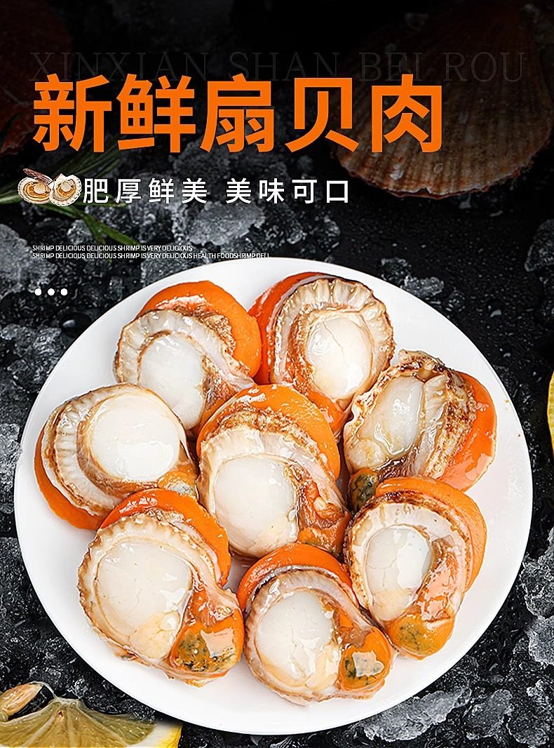 | Packaging specifications | 40-60 scallop meat 500g (net weight),20-30 scallop meat 500g (net weight),Harbor clam 500g (net weight) |